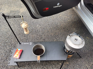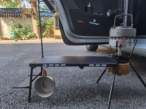 桌架轻便实用 一人solo足够 两人喝茶也够用磨砂表面漆面均匀 轻便且有质感 黑化风格 轻量化露营 值得推荐