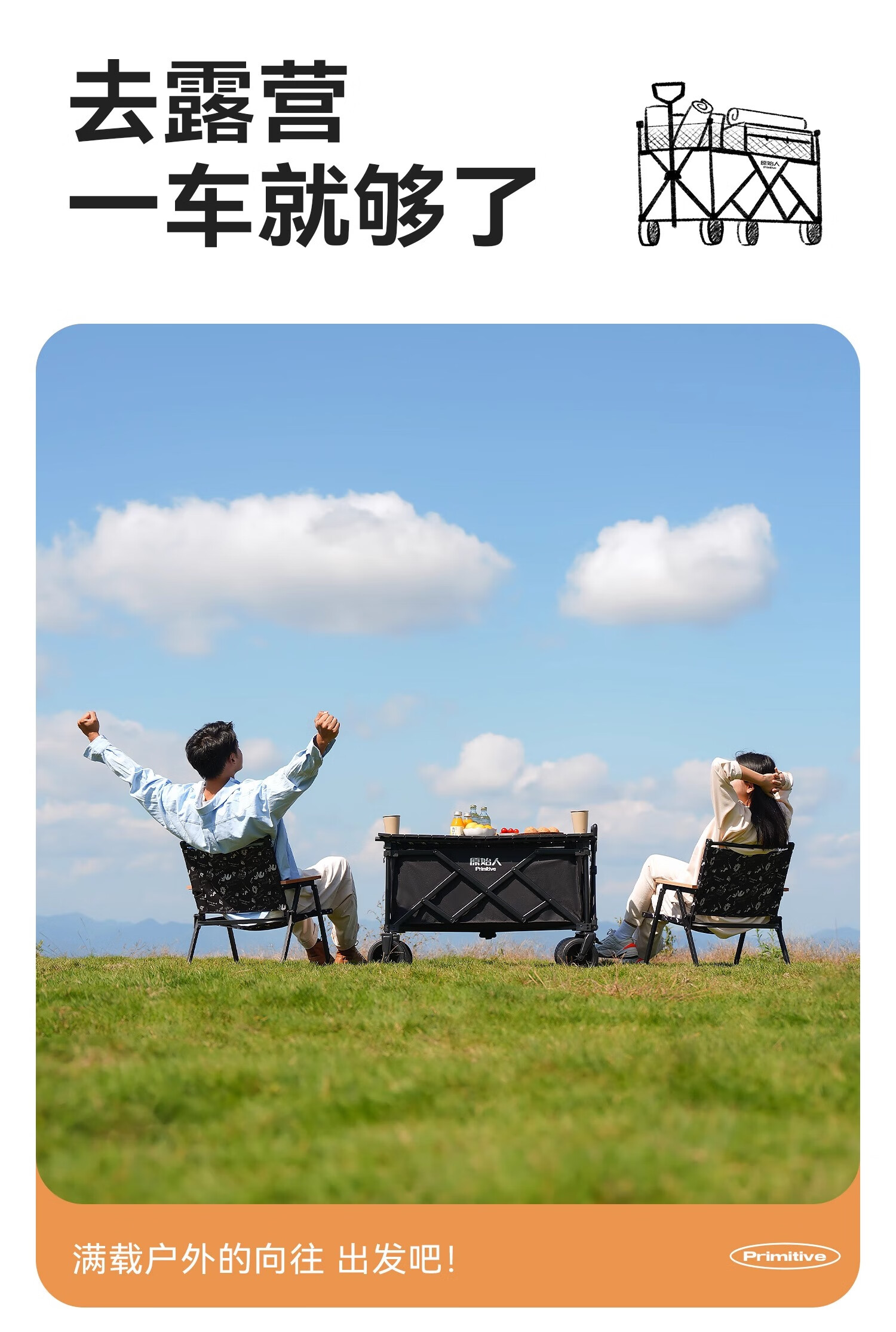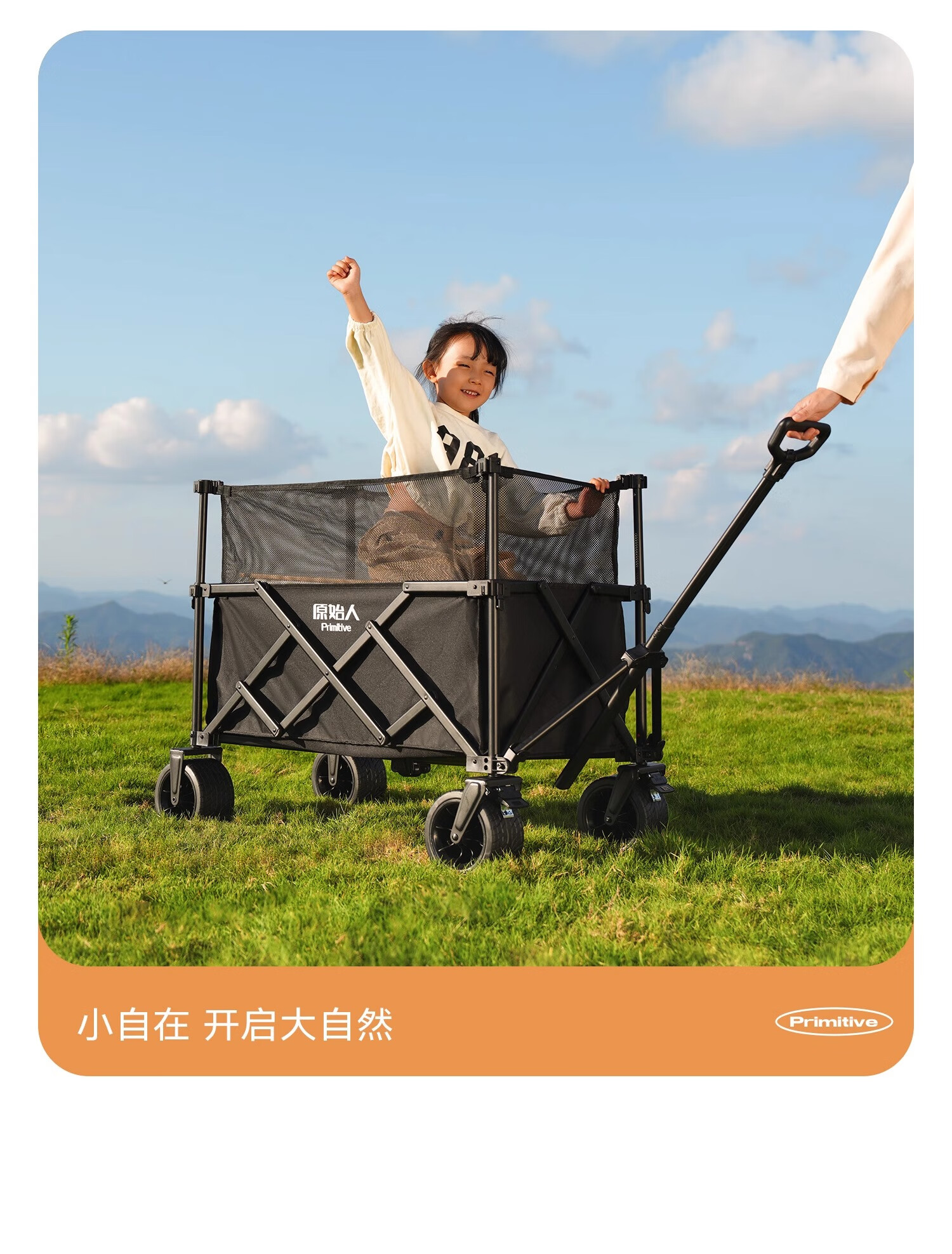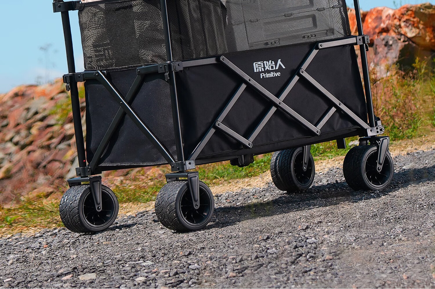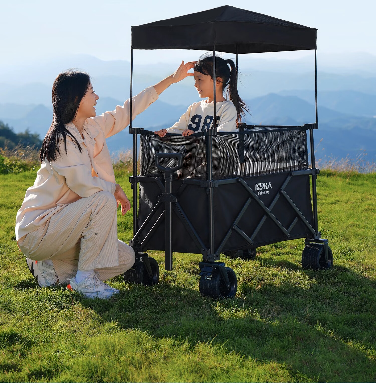 原始人户外露营推车可折叠野餐营地旅行小拖车拉车遛娃野营大号手推车 270L 加高越野款曜黑+加厚顶棚