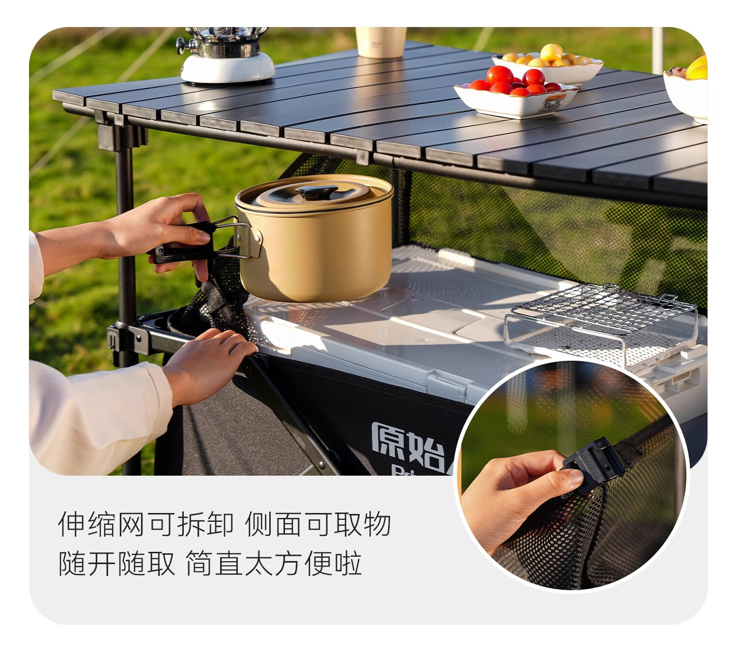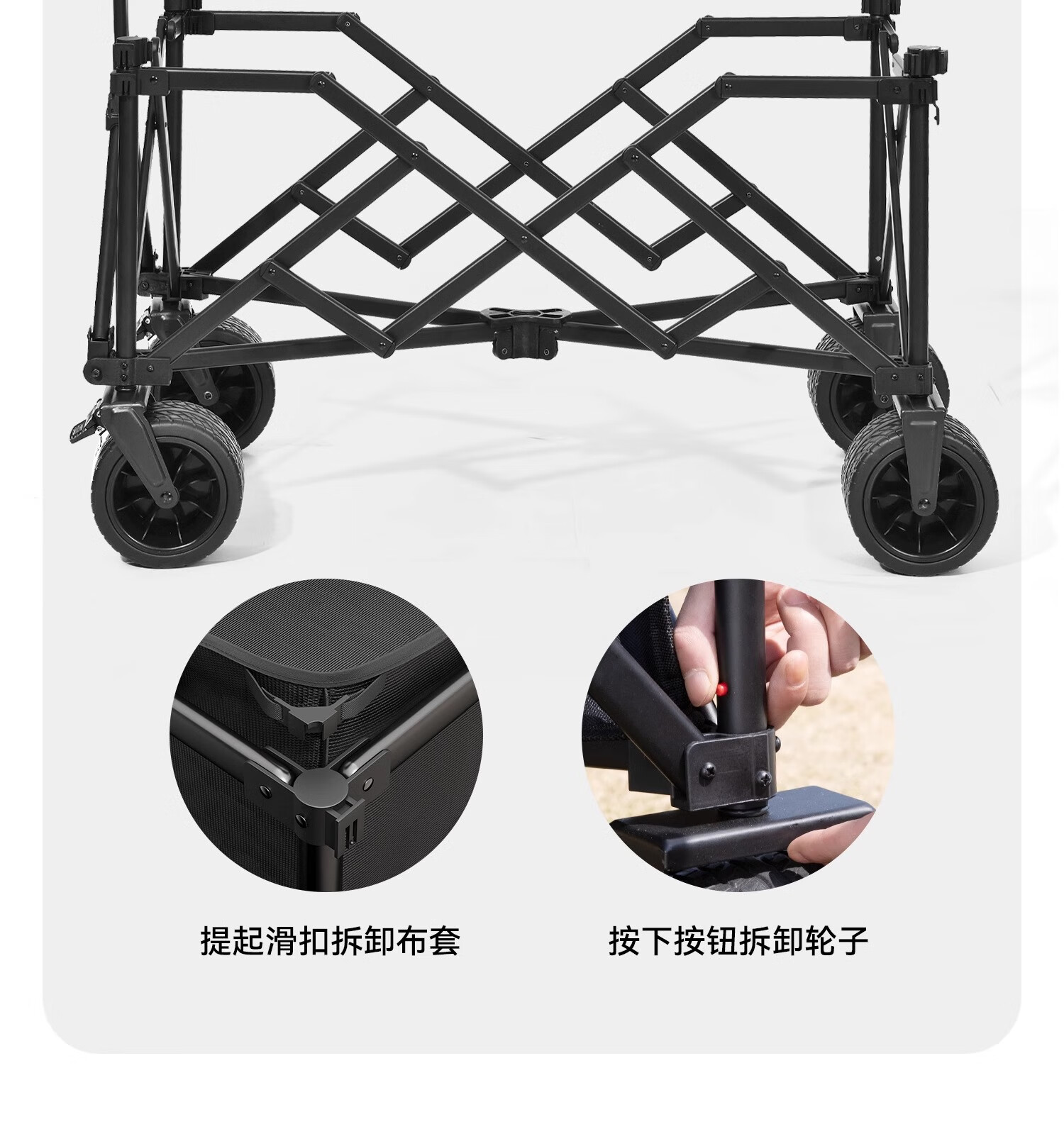 北山狼户外露营车聚拢大号营地车旅行野餐野营可推儿童遛娃手推车 海松绿【推杆款】+黑色桌板