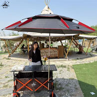 鹿营地摆摊推车露营车一体车小吃车超大款聚拢可升降地摊移动夜市餐车 大伞 橙咖车+120x60黑桌+黑伞