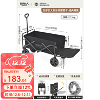 云伴(YUNBAN)营地车手推车户外露营车便携式可折叠大容量拉杆小拉车 8寸双拼【加宽坦克轮/双向刹车】