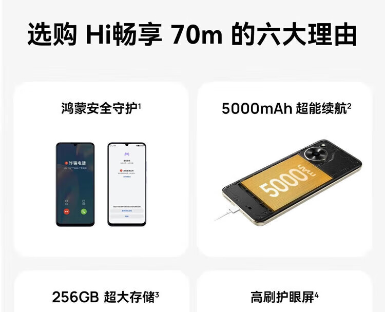华为智选手机70M 鸿蒙 全新正品 5G手机 5000mAh超能续航24期【免息】畅享70M 大储存Hi畅享系列 曜金黑 6GB+128GB 【24期】免息 赠延保+碎屏保