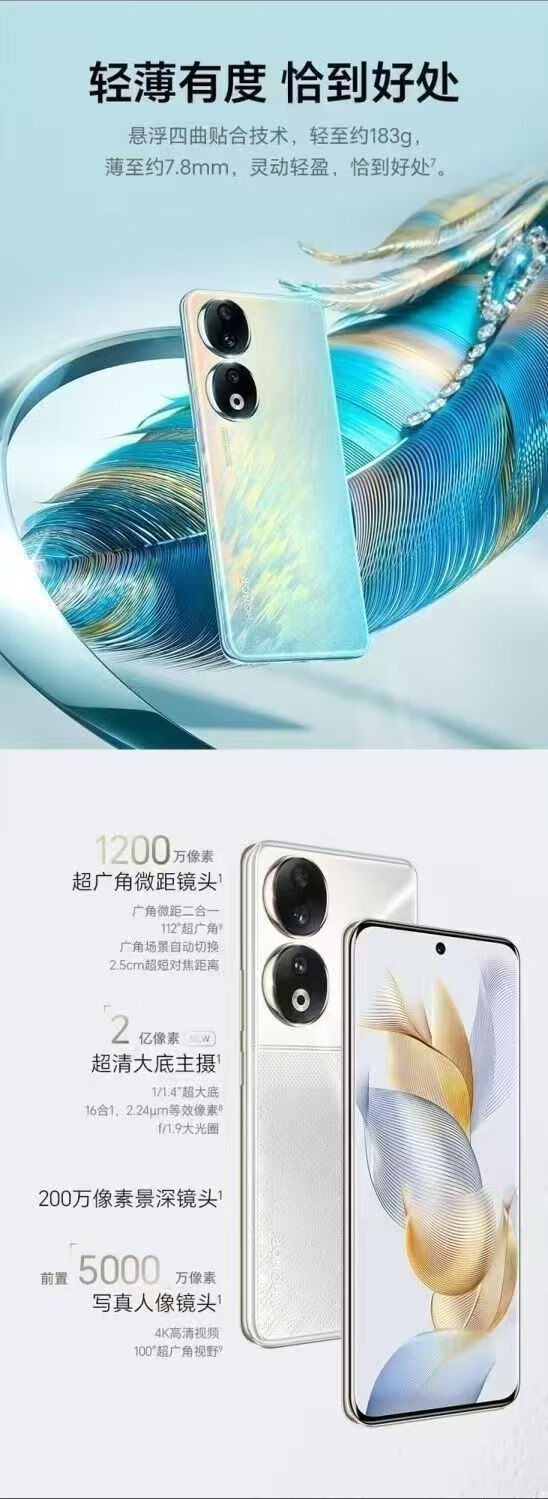 荣耀90 5G展样机 超清相机2亿像素 零调光护眼屏 5000mAh长续航双卡 冰羽蓝 16GB+256GB
