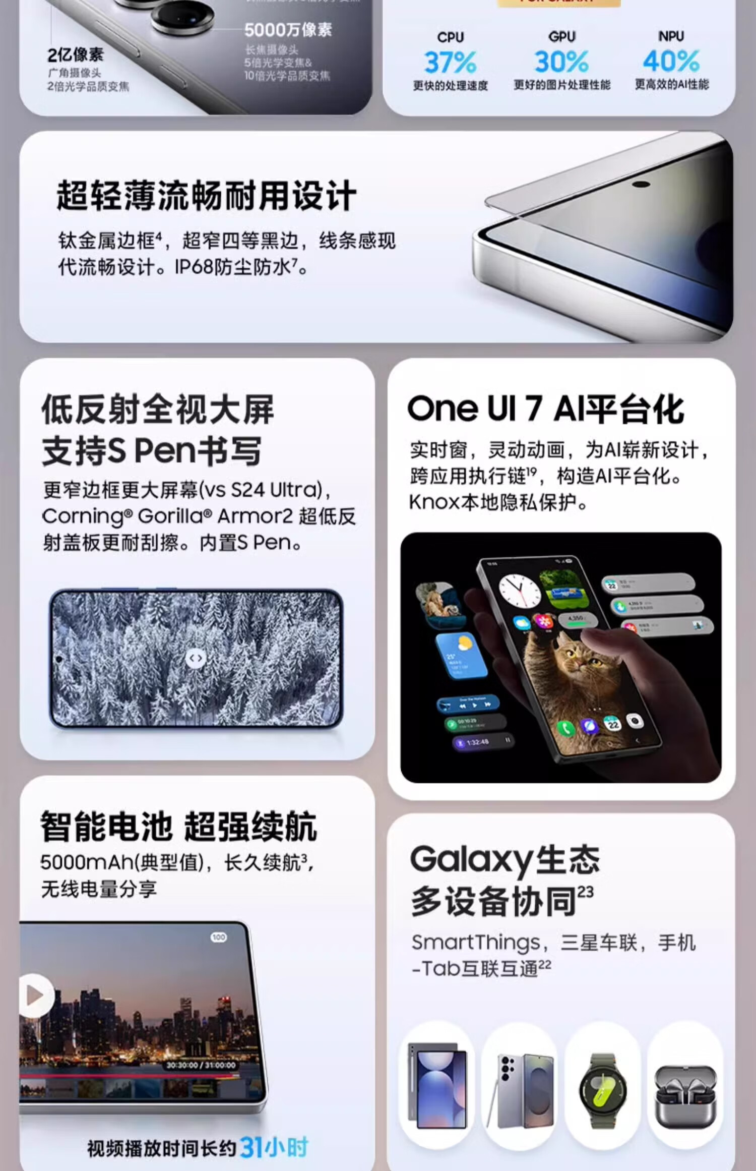 三星(SAMSUNG)GalaxyS25UltraSM-S9380S25U5G通AI手机 钛雾灰 套餐二XG联保刷国行12GB+25