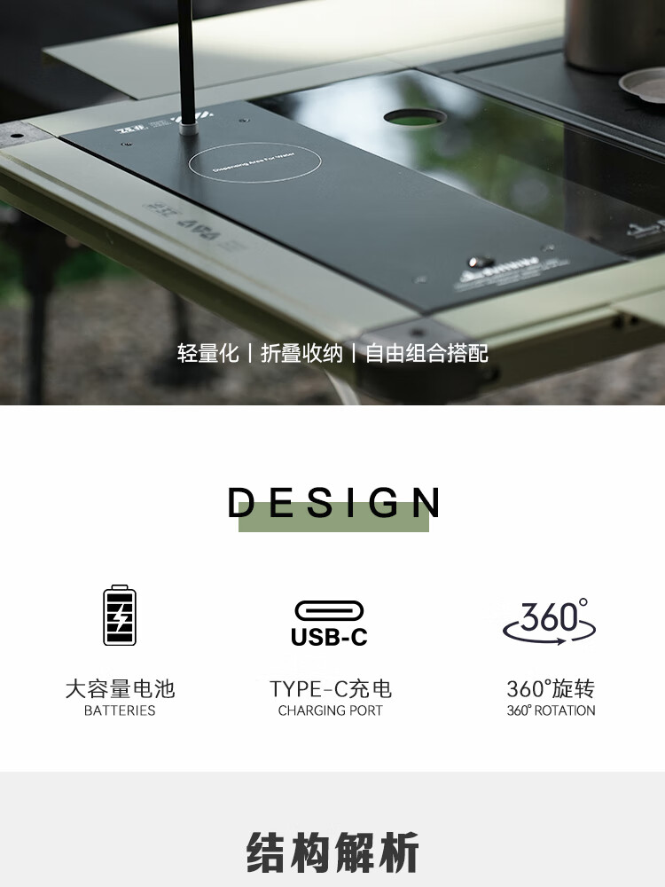 迪飞客户外露营野餐便携式IGT三单元世纪桌可拼接拓展战术桌折叠蛋卷桌 单元拓展条 夜幕黑