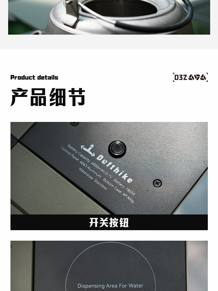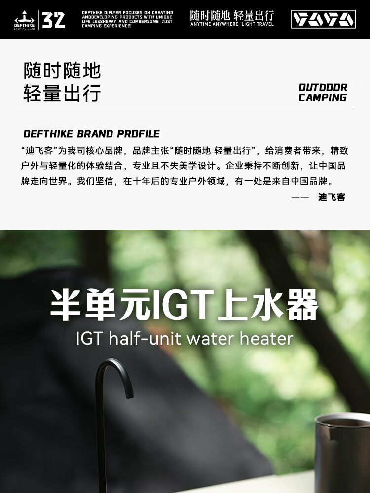 迪飞客/Defthike户外露营野餐IGT桌面配件充电超长续航铝合金茶桌上水器 黄色