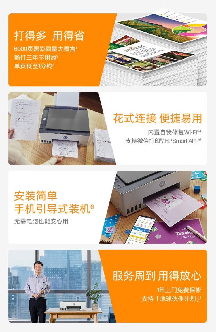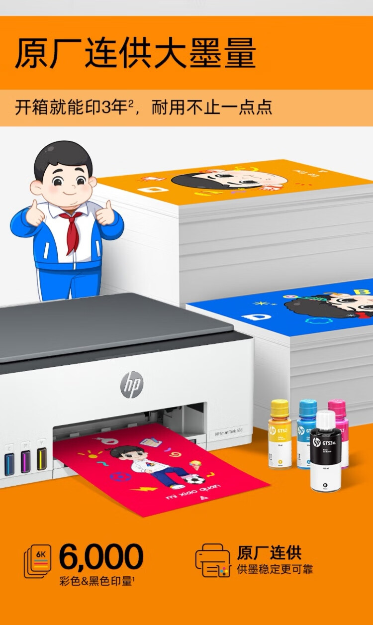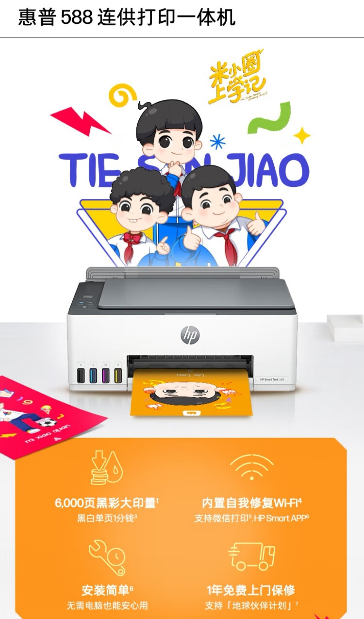 惠普(HP)588彩色打印机学生家用喷墨 无线连供打印复印扫描照片打印 低成本 一年上门