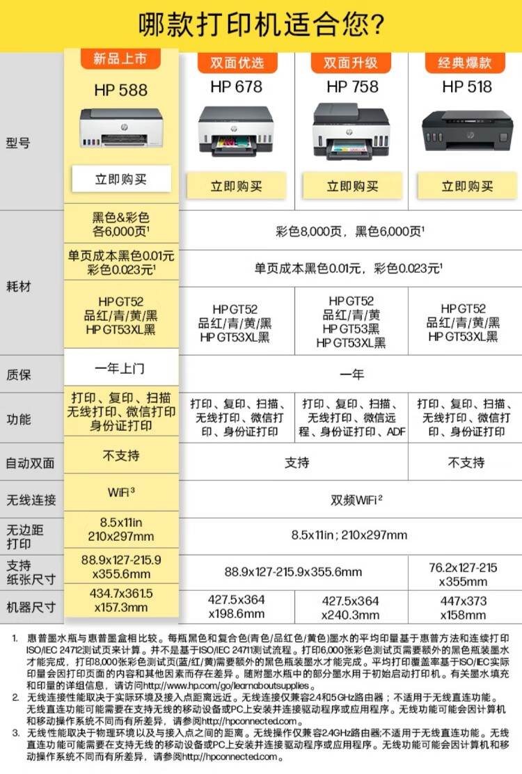 HP惠普(HP)588彩色打印机学生家用喷墨 无线连供打印复印扫描照片