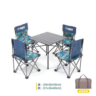 TANXIANZHE探险者户外桌椅折叠便携露营装备轻铝合金车载野餐马扎蛋卷桌套装 大号树叶蓝-方桌+4椅