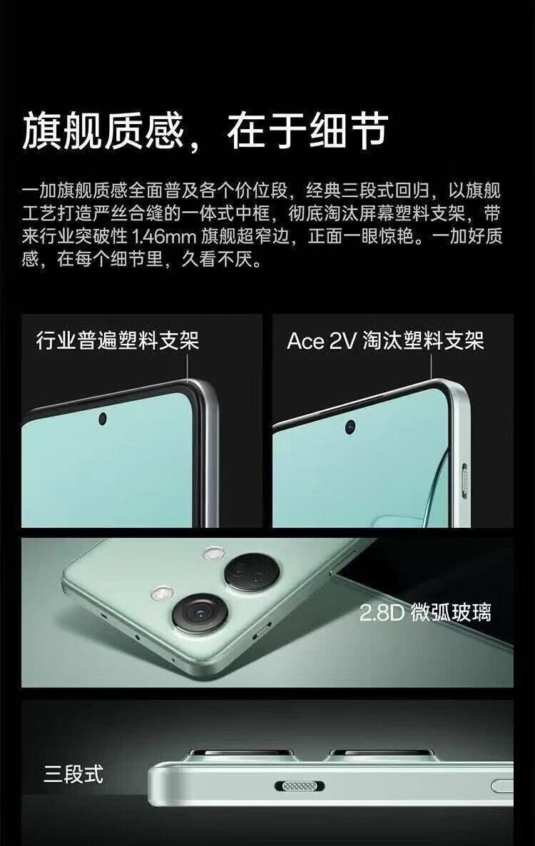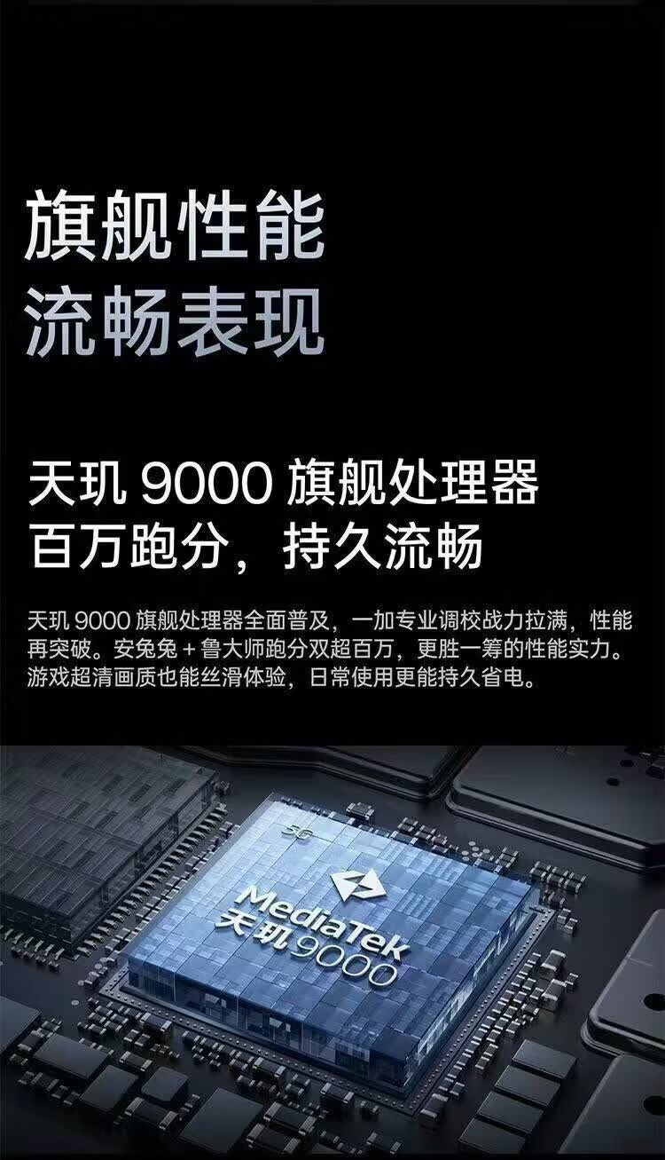 一加Ace 2V 5G手机天玑9000处理器6400万高清摄像6.74英3 黑岩 5G通 12GB+256GB