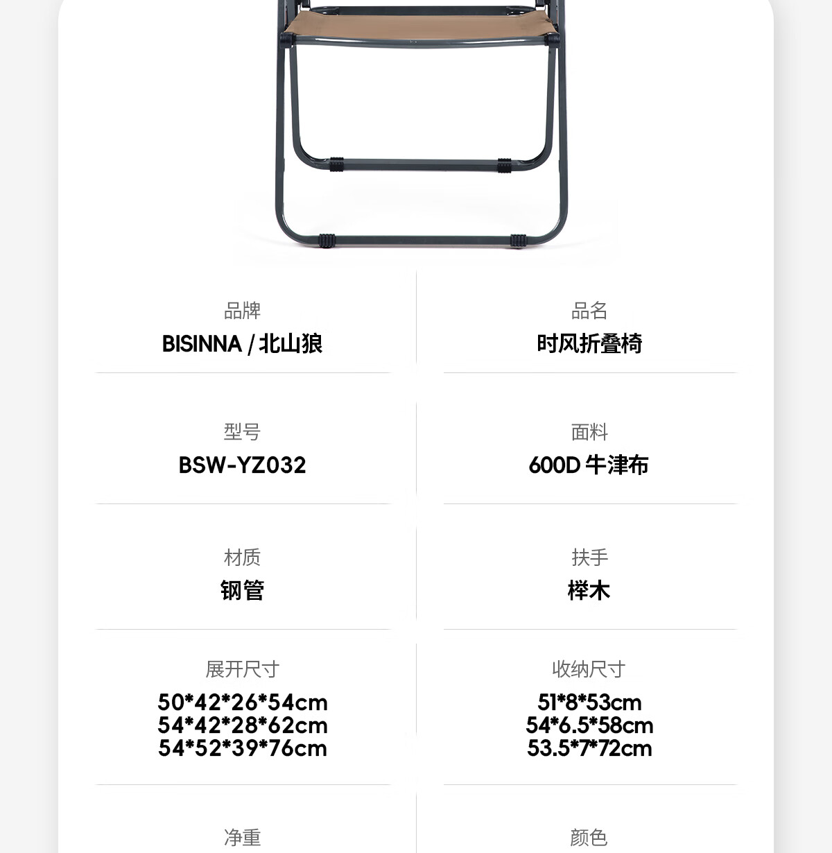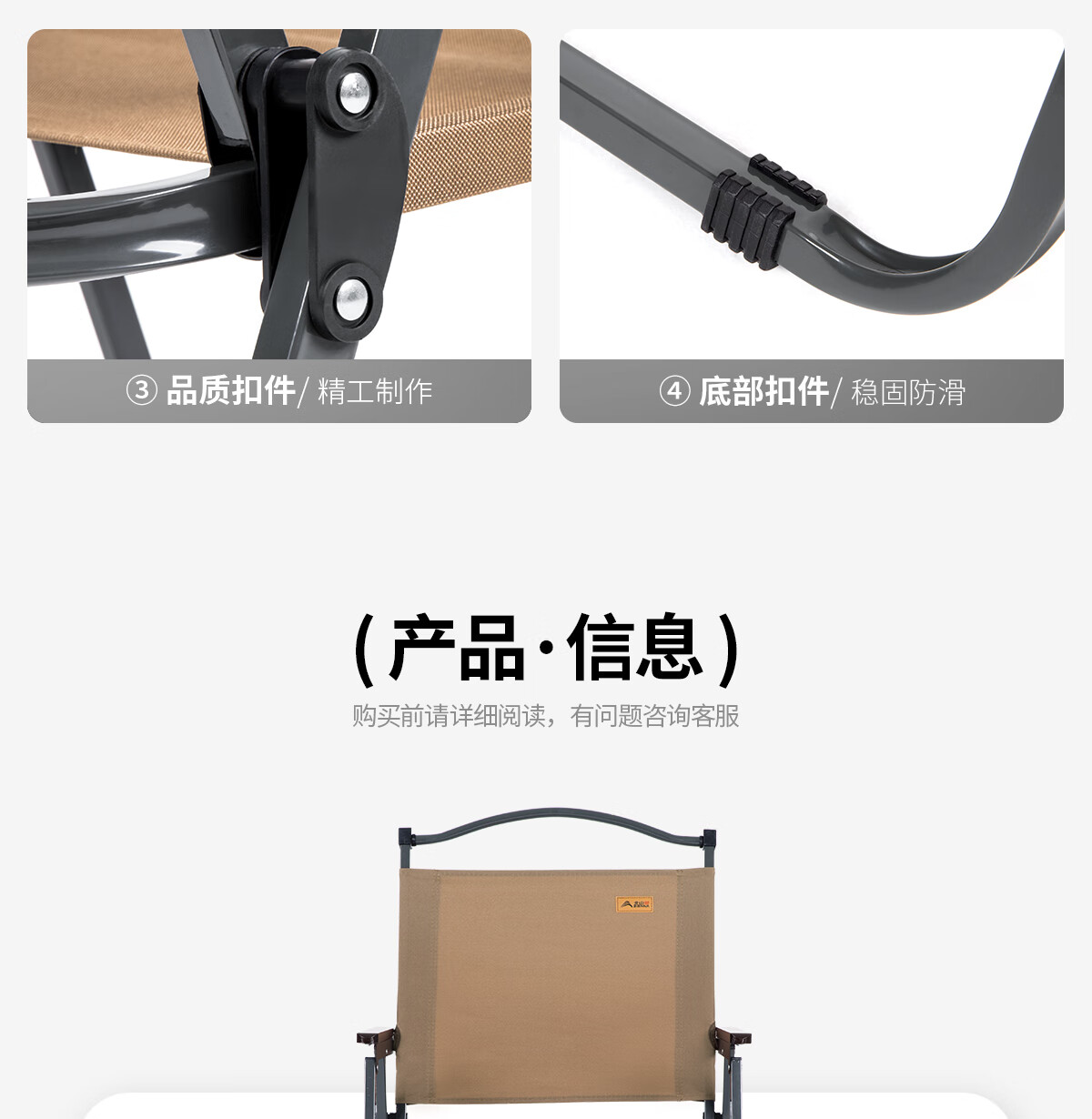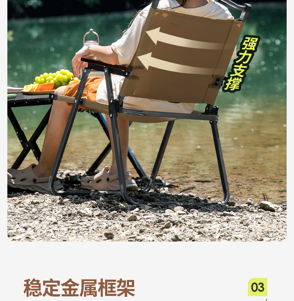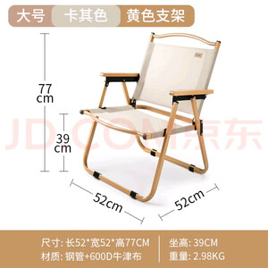 北山狼 户外折叠椅便携式露营椅子家用克米特椅 【基础款】-中号卡其黄架