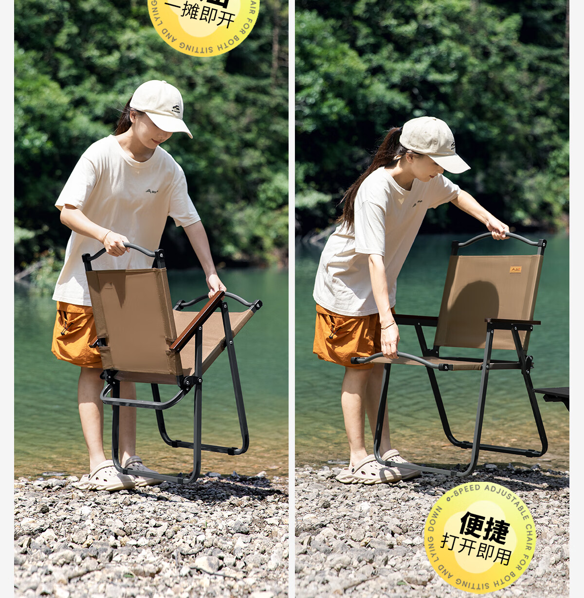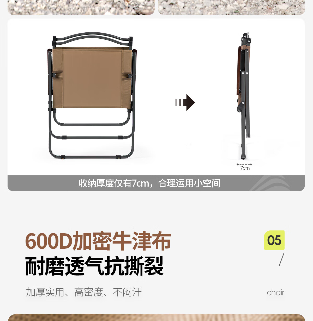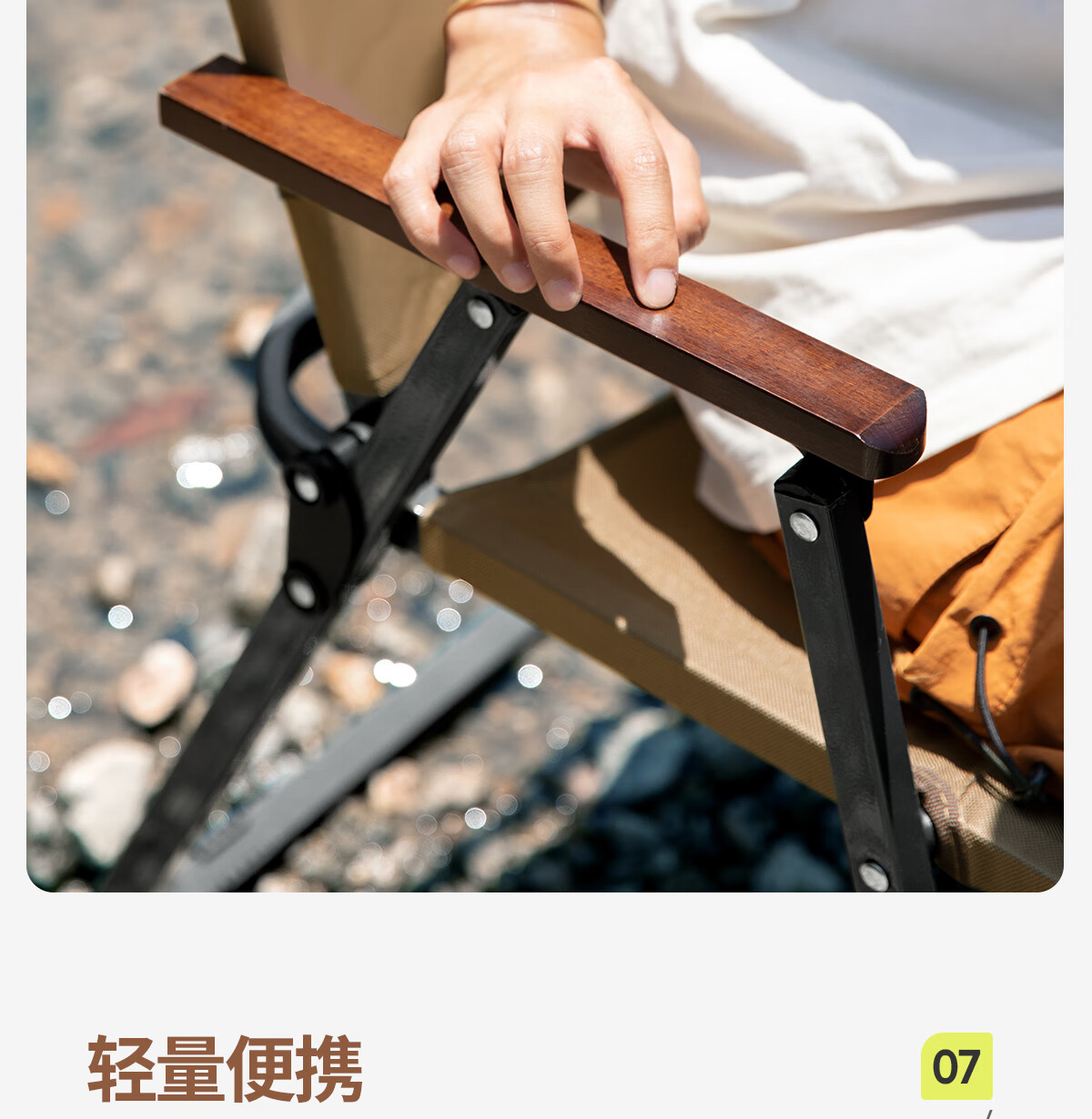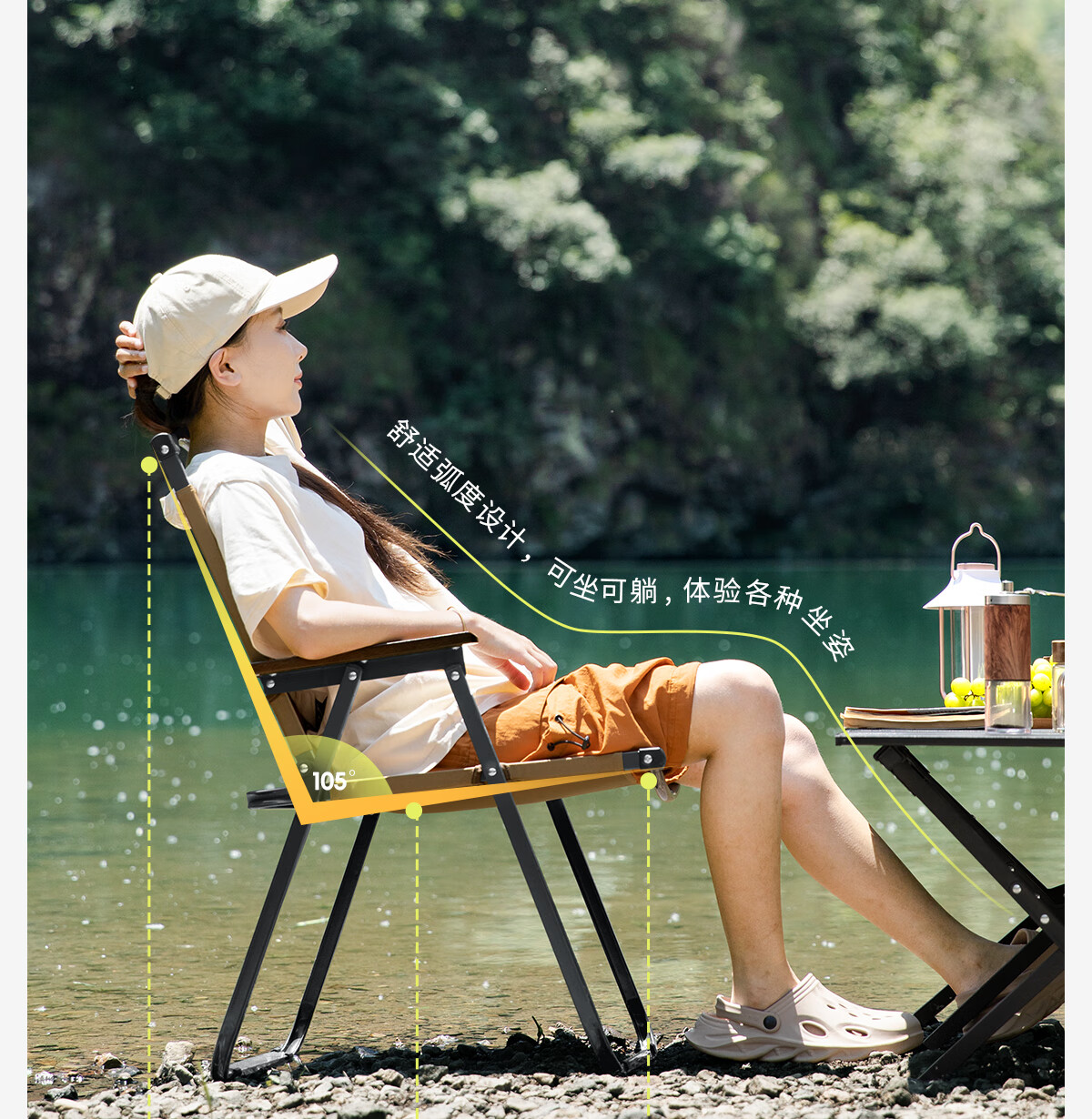 北山狼 户外折叠椅便携式露营椅子家用克米特椅 【基础款】-中号卡其黄架