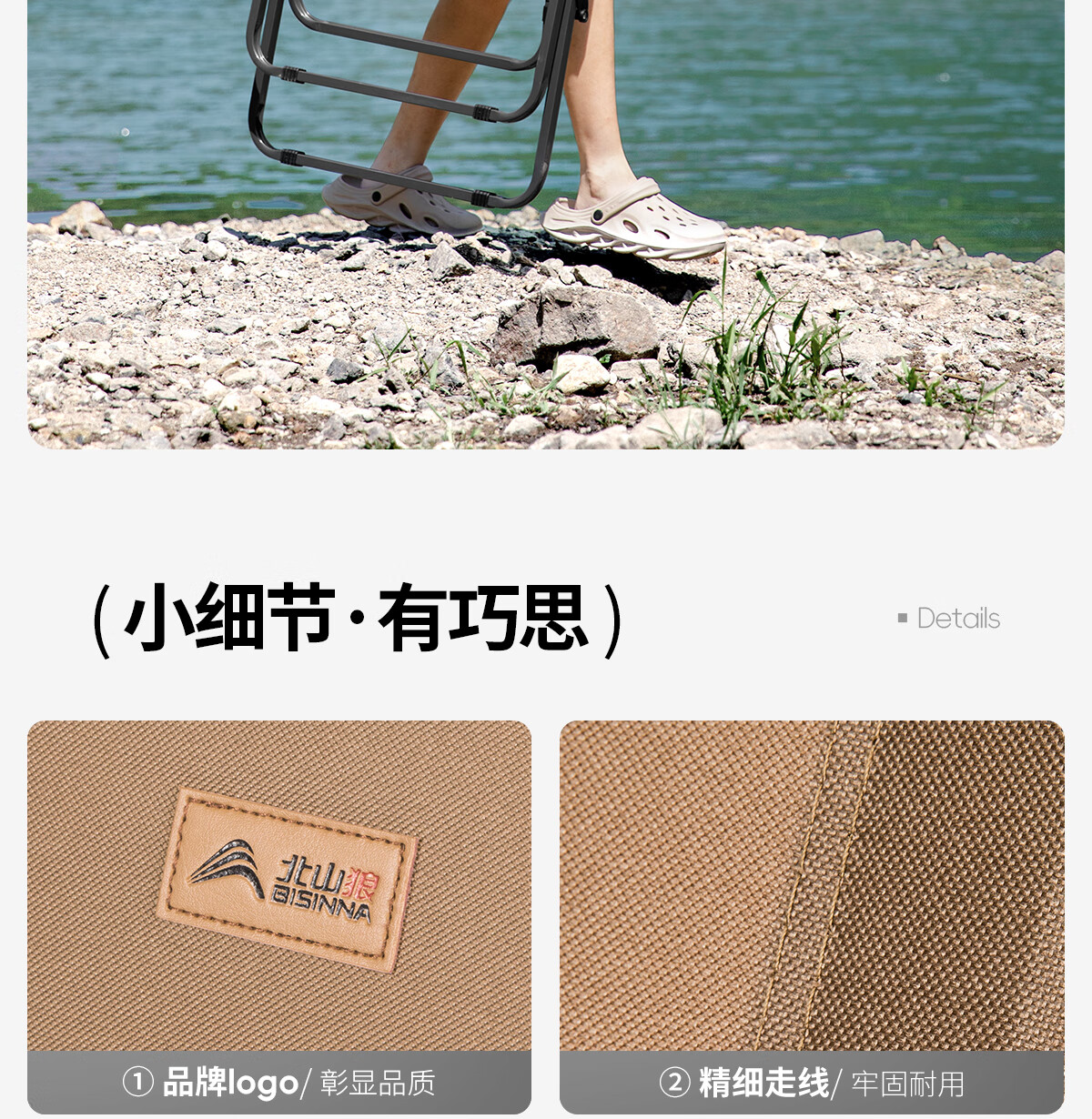 北山狼的户外克米特椅子真的不错,无纺布很平整也防水,缝纫线很细密,椅子框架很结实,我买的是中号的,体重75公斤坐上完全没问题。