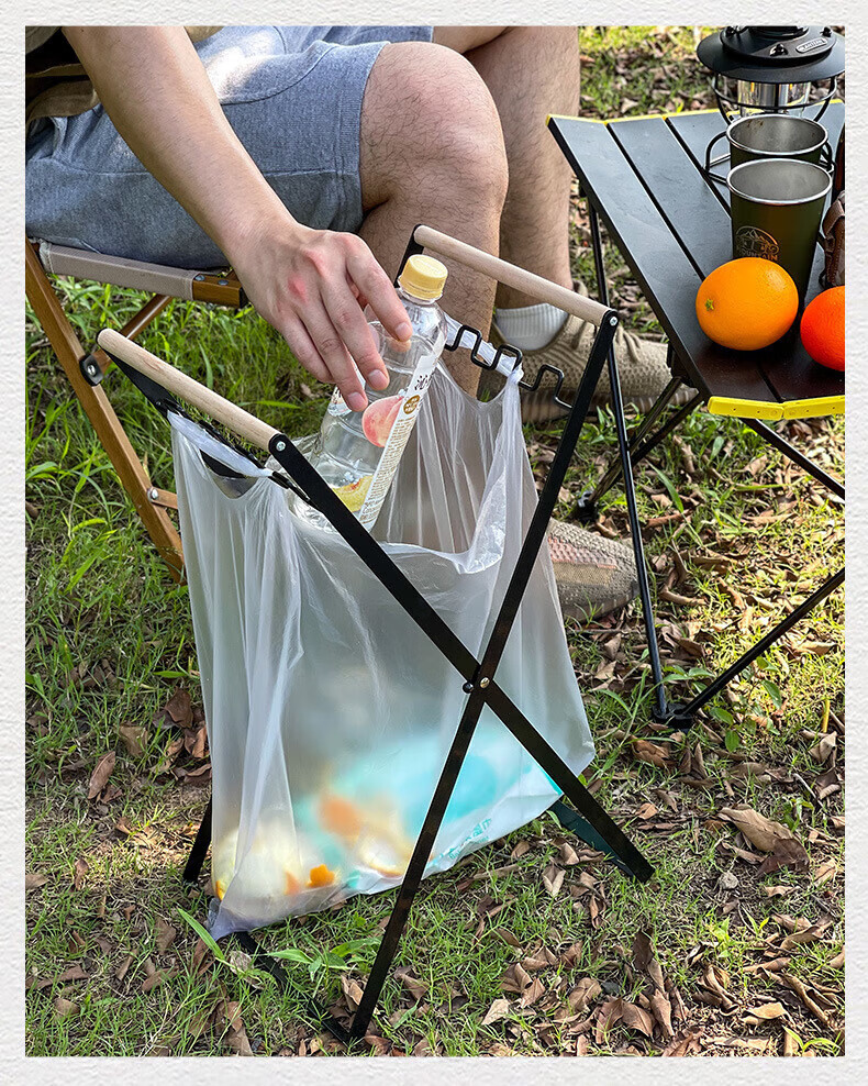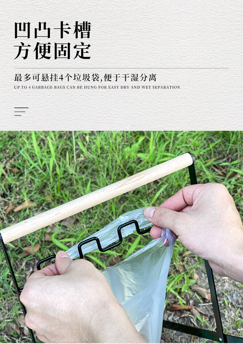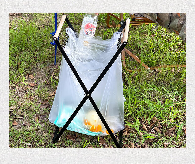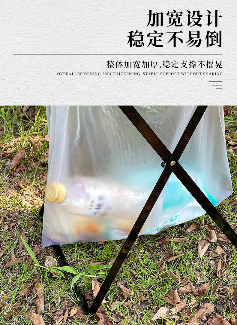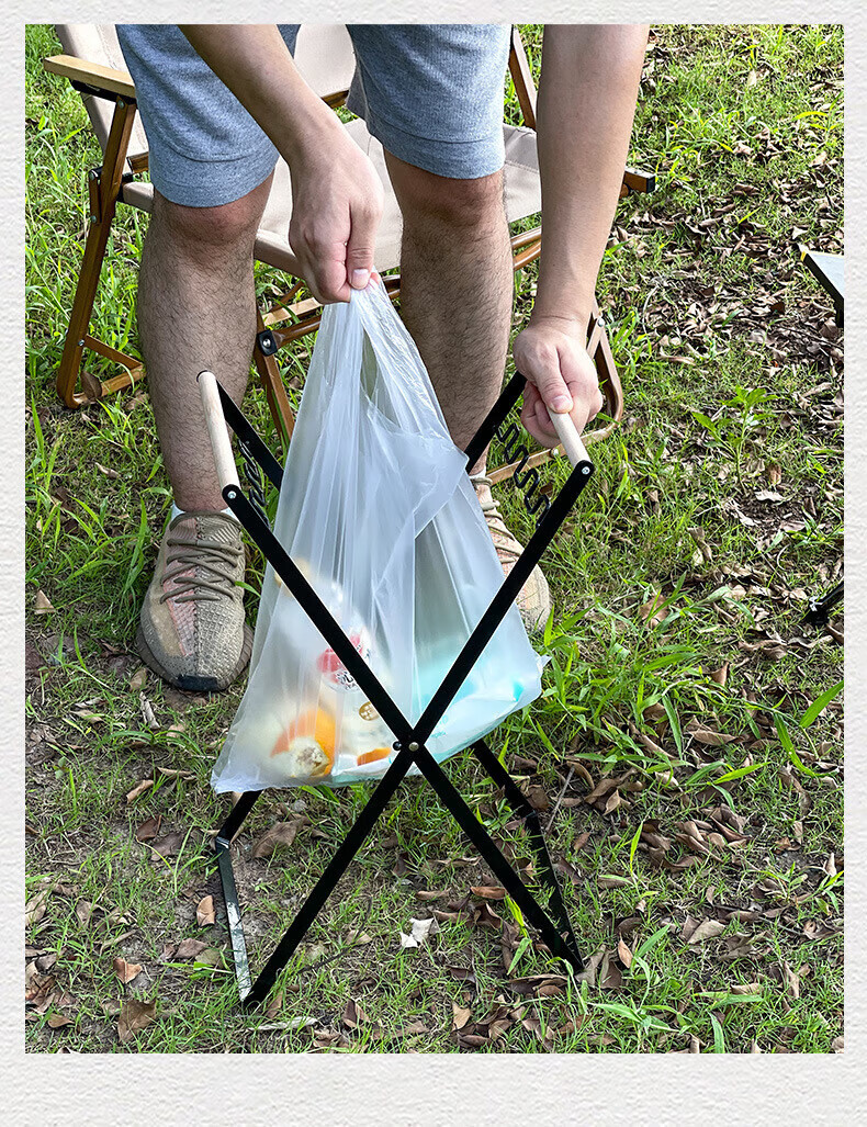 CLS户外可折叠垃圾架野餐家用厨房杂物收纳架塑料袋支架木柄铁艺垃圾 45×60黑色垃圾袋一卷(1.2丝,20