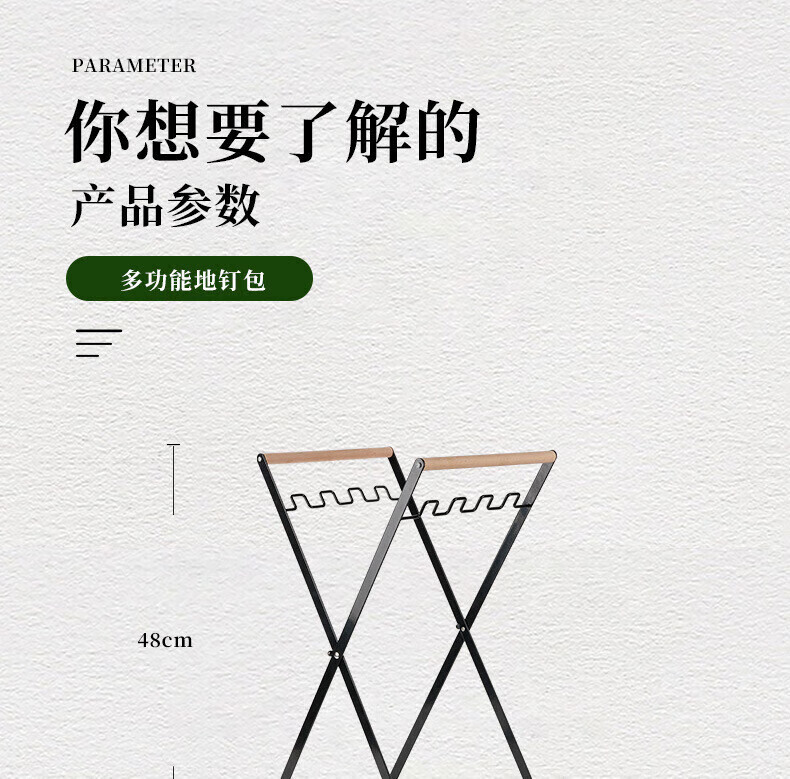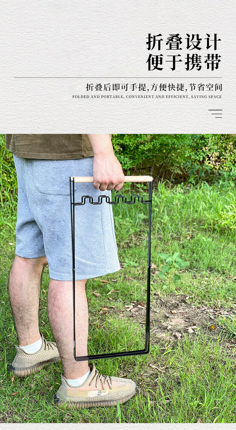 钻后户外露营折叠垃圾架收纳架家用厨房金属垃圾桶垃圾袋支架烧烤支架 架黑色