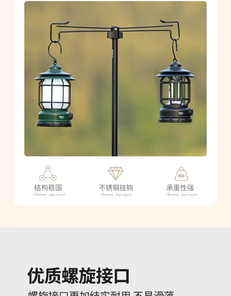 质量很好的,老婆很喜欢的。我们家一直很喜欢露营,露营的话晚上虽然有头灯,但还是把灯挂起来更有味道一些,这款灯架质量很不错的,满意。