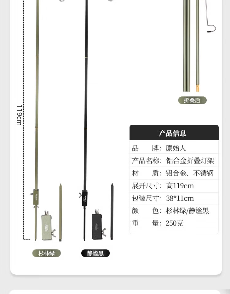原始人户外露营灯架灯杆支架户外灯架杆露营灯野营马灯置物架挂架 铝合金插地折叠灯架(墨绿色)