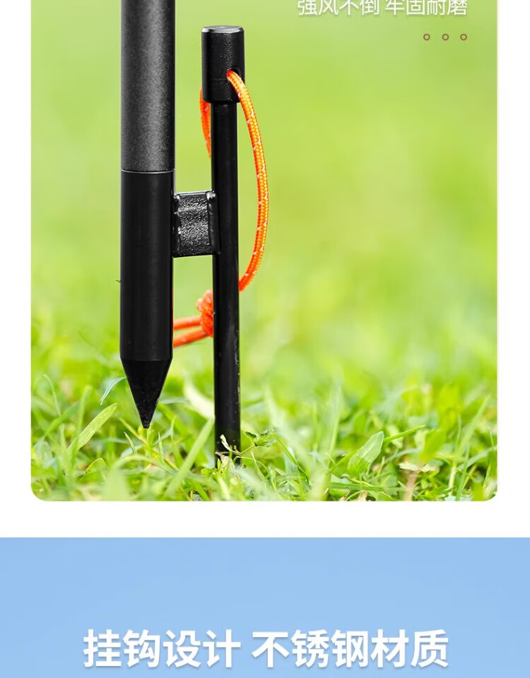 这是一款设计非常灵活的户外灯架,虽然是接近2米的高度,但是收纳起来只有小小一包,采用的是多节管子叠加的设计,可以根据使用环境的情况灵活调节高度,带的地钉非常稳,配有两个挂钩,可以同时挂两盏露营灯,非常实用,值得推荐的好物。