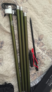 买了个超亮的露营灯,寻思着自然是挂在脑门顶上才不会亮瞎双眼,因此就随意买了个这种组装式灯架。 使用感受:每次到露营地,都得拿出这几根小短棍组装起来,组装的时候螺纹给人感觉不是很顺畅,特别是用过几次后,拆掉时咯吱咯吱声音有点刺耳(也许下次该喷点神油润滑下)。唯一的安慰时收纳方便,不占啥地方。组装后高度说是187cm,灯挂在上面也还可以。