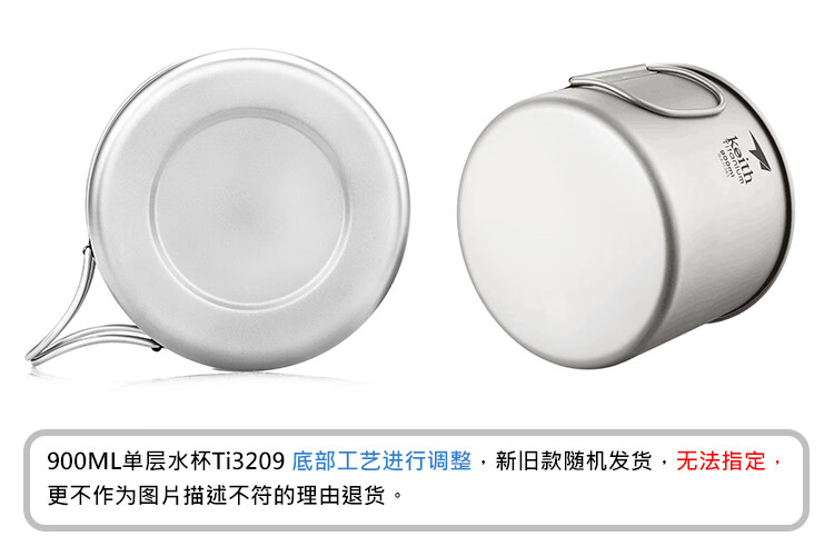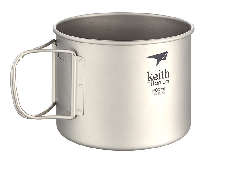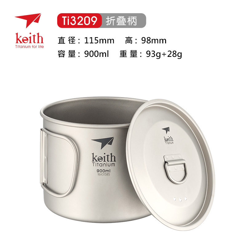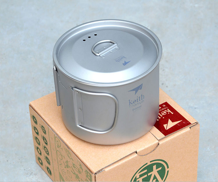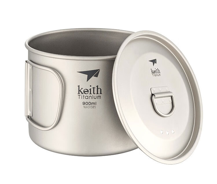 铠斯(KEITH)纯钛杯子折叠单锅单层水杯轻便户外野营泡面杯煮汤杯野餐露营郊游 900ML折叠柄 (联系客服优惠)