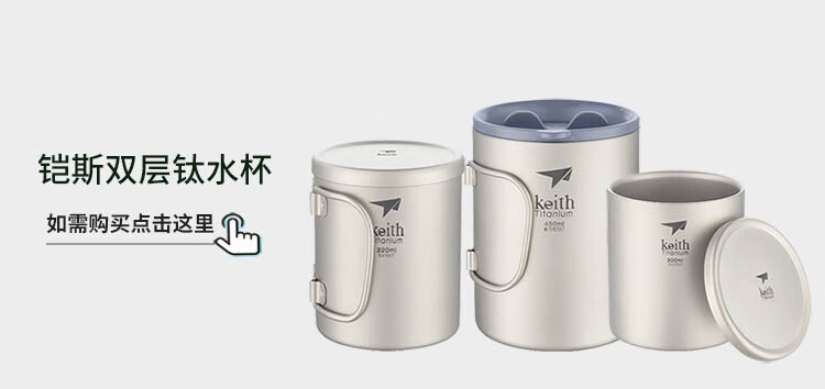 铠斯(KEITH)折叠水杯便携户外杯子钛水杯 可烧水野营钛杯单层杯茶杯野餐郊游 折叠柄 350ML(钛盖)