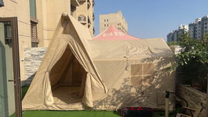 空间真的超级大,一米八站在里面毫无压力,杜邦云床挤一挤能放4个,防潮效果也无敌,窗户和门也很多,通风透气,视野好,只有一个充气口,配个电动泵,搭建非常简单轻松,唯一缺点就是太重了,一个人基本弄不了