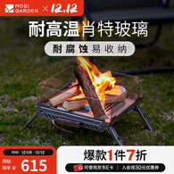 牧高笛(MOBIGARDEN)户外露营多功能取暖炉折叠便携不锈钢烤火炉 燃料仓-夜幕黑