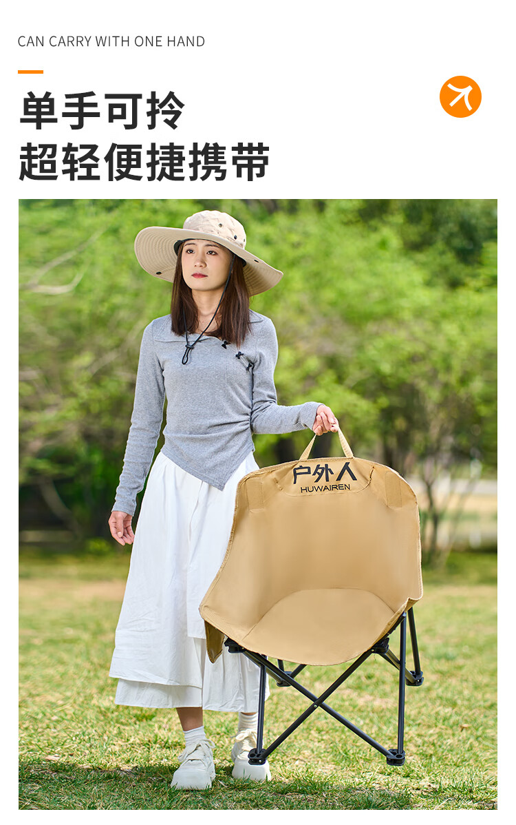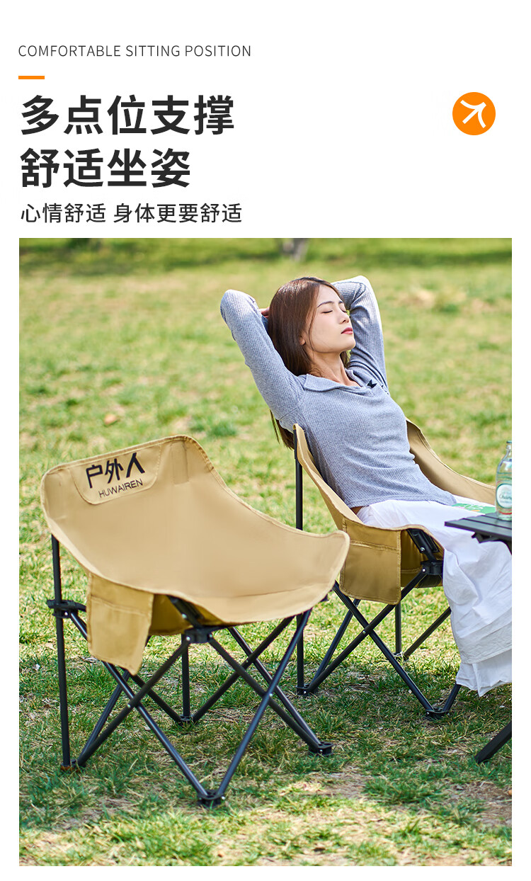 HUWAIREN户外可折叠月亮椅露营椅写生椅钓鱼椅沙滩椅马扎椅子高背带腿托 蛋卷桌53cm 无规格