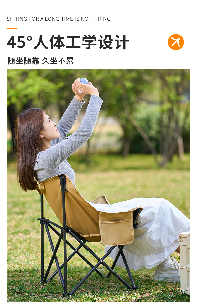 NatureHike挪客 户外便携折叠椅子 野餐露营铝合金休闲椅 靠背钓鱼凳子 卡其