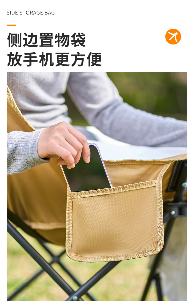 NatureHike挪客户外便携折叠椅 休靠背椅 旅游露营钓鱼休闲椅子超轻克米特椅 卡其色-小号