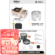 原始人户外卡式炉便携式卡磁瓦斯炉野外露营燃气灶卡磁炉炉具野炊全套 卡其色+2锅1壶【赠餐具】+挡风板