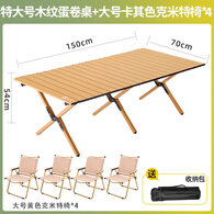 北乐户外折便携式露营蛋卷桌椅套装野餐野炊营桌子摆摊烧烤可折叠椅 【木纹色150cm】蛋卷桌+大号椅*4