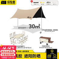探险者天幕户外黑胶露营遮阳防晒公园聚会野营便携防雨八角蝶形遮阳棚 30㎡【黑胶天幕+桌椅+后开推车】
