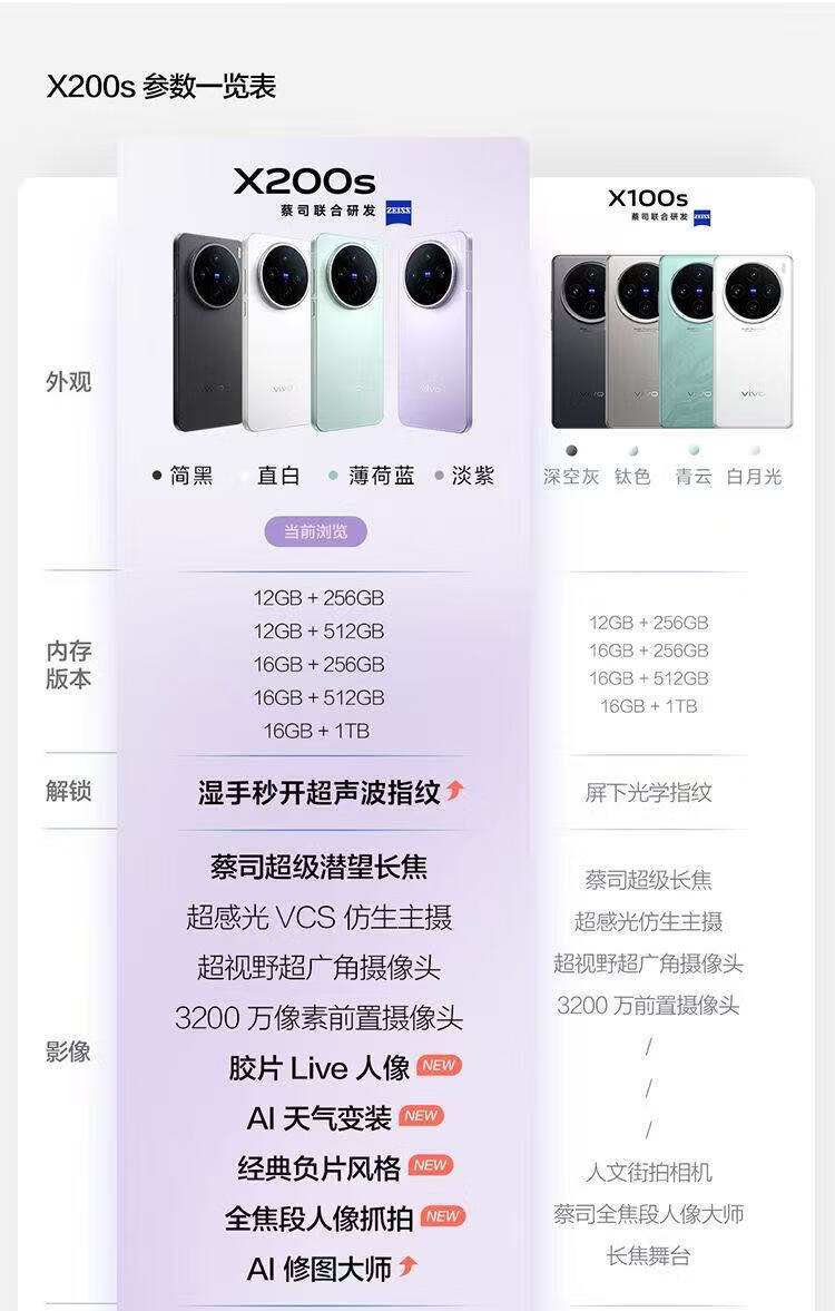 vivoX200s 蔡司超级潜望长焦 湿手秒开超声波指纹 AI拍照Live人像手机 简黑 16GB+512GB 单机+原装快充+全国联保