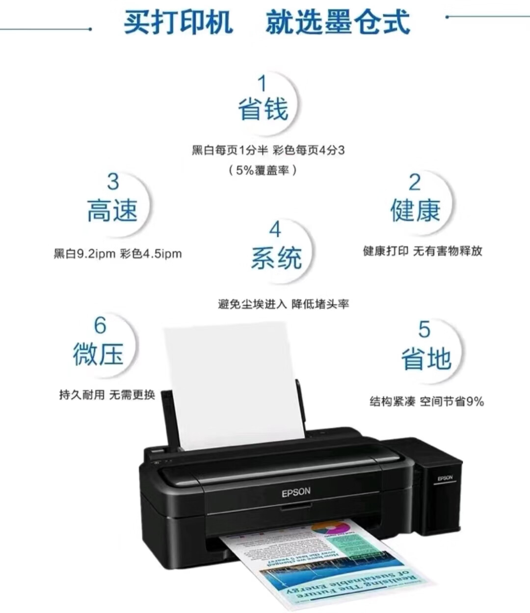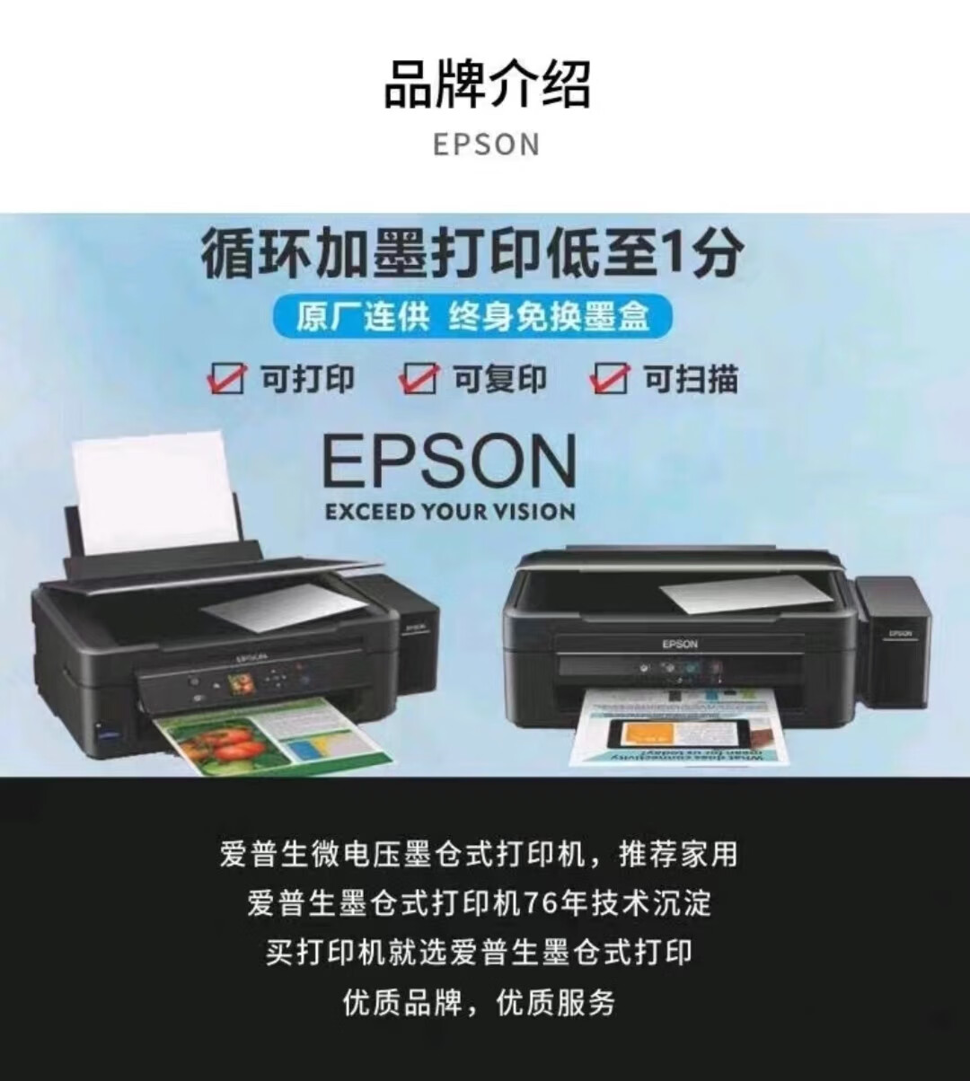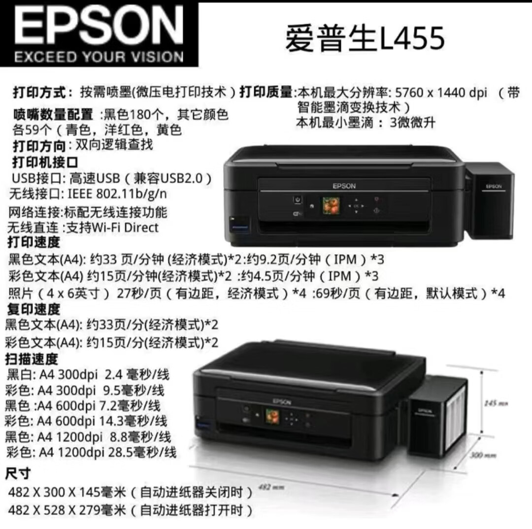 爱普生L310L351L360L380L455L358L墨仓式彩色喷墨打印机 L455L485复印扫描WiFi直连打印