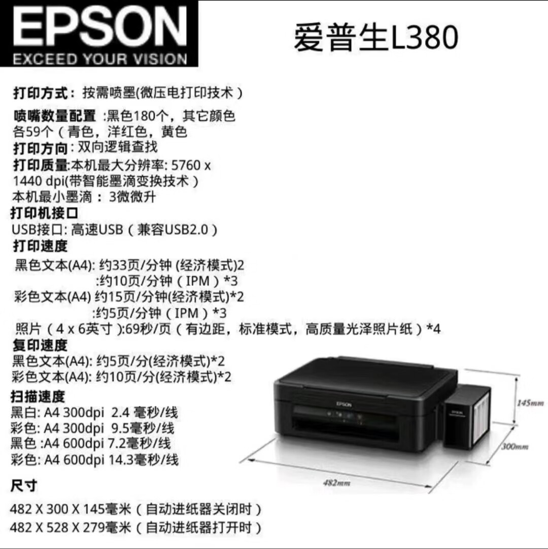 爱普生(EPSON)喷墨打印机L310 351 360 455彩色喷墨墨仓式打印机学生办公 L360 363 380 383到手好用手机有1 套餐一