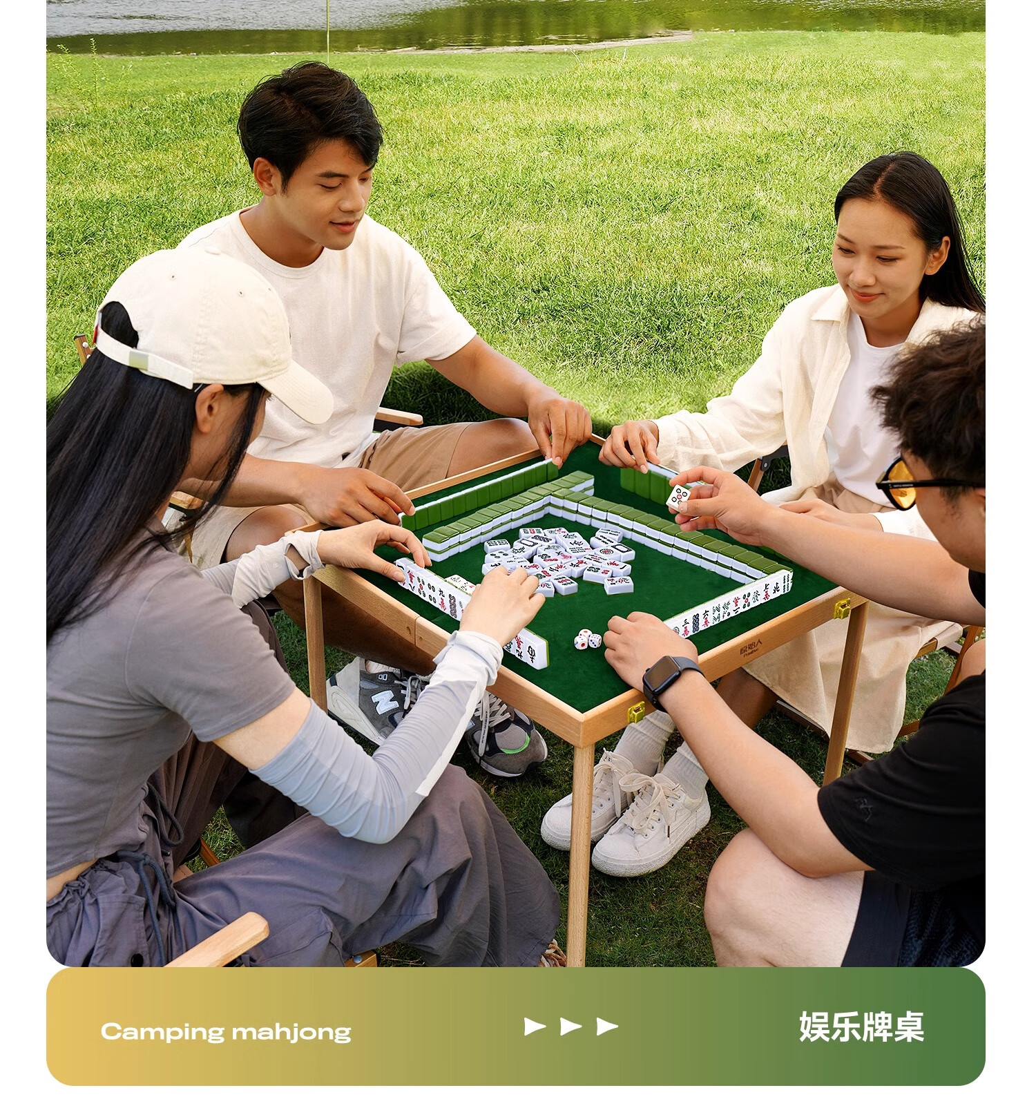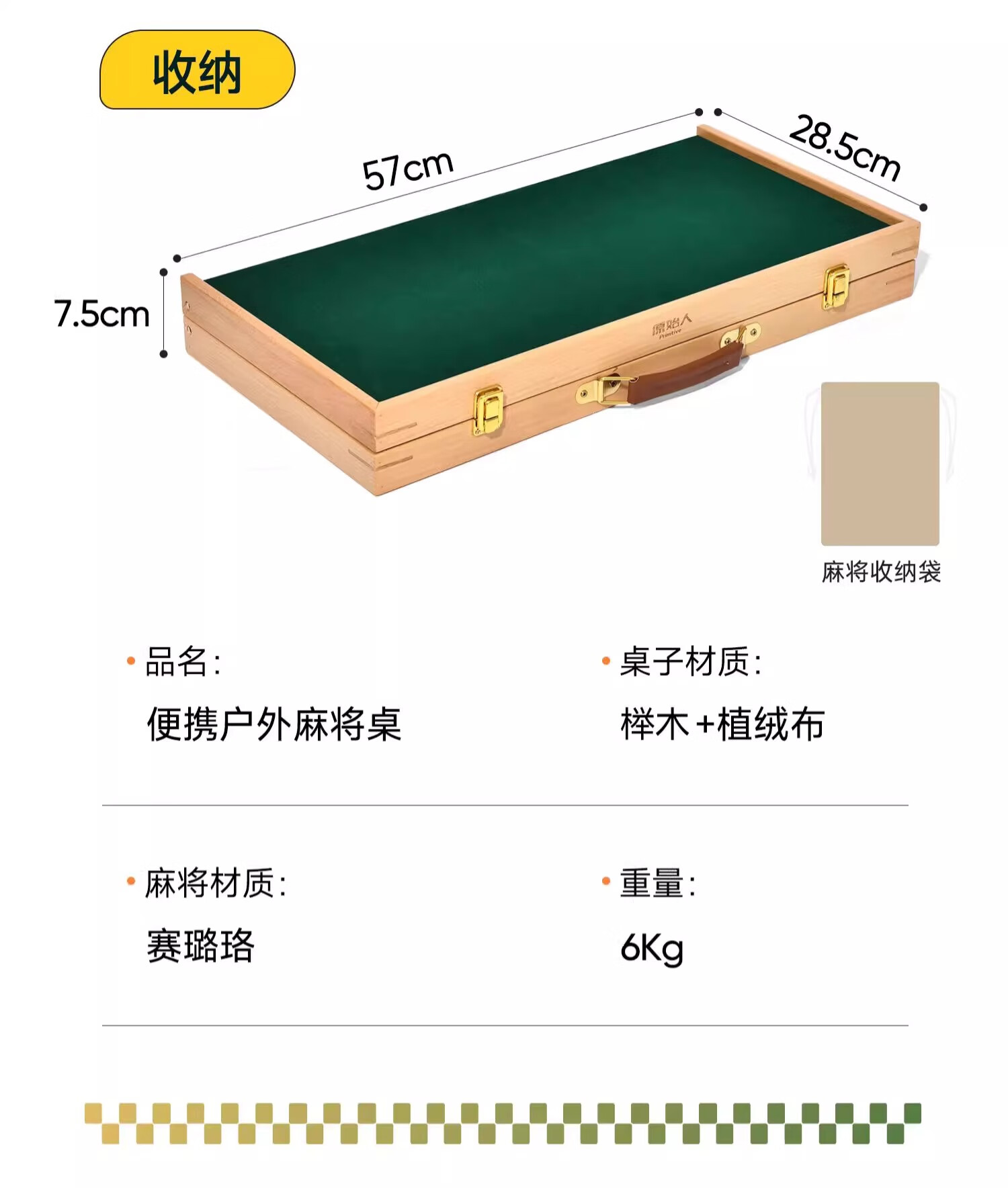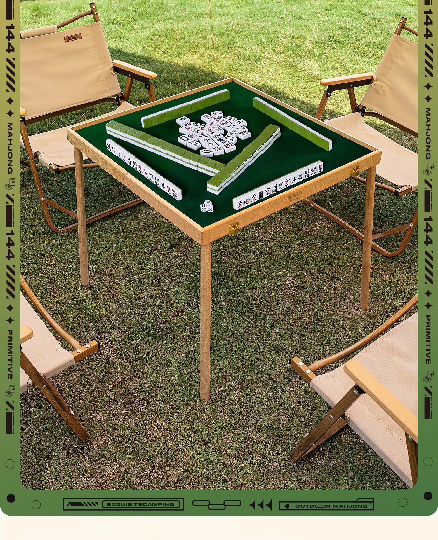 原始人户外折叠麻将桌子旅行便携迷你麻将牌野餐桌椅露营装备用品 麻将桌+144张麻将【送收纳包】