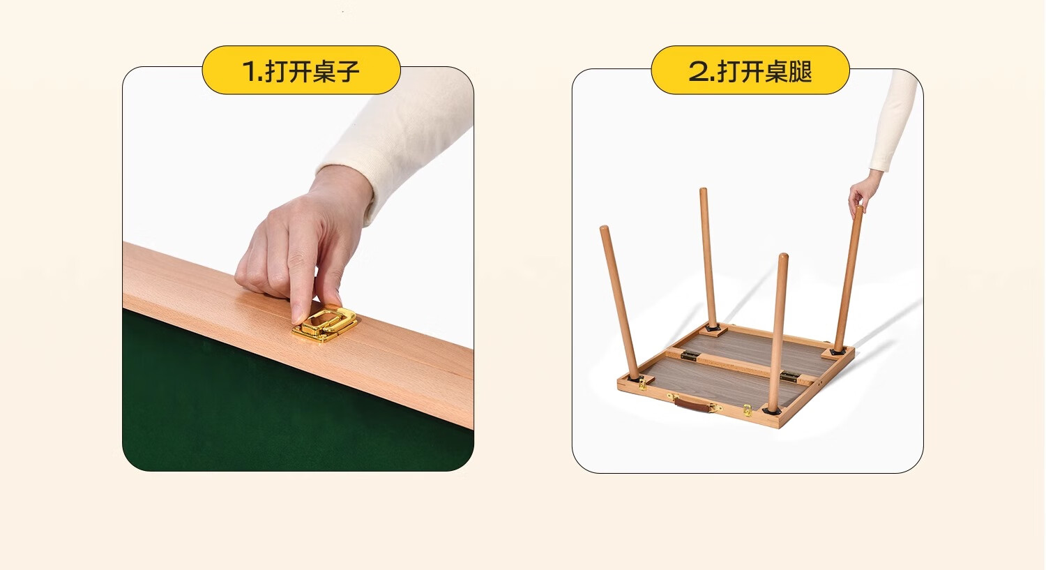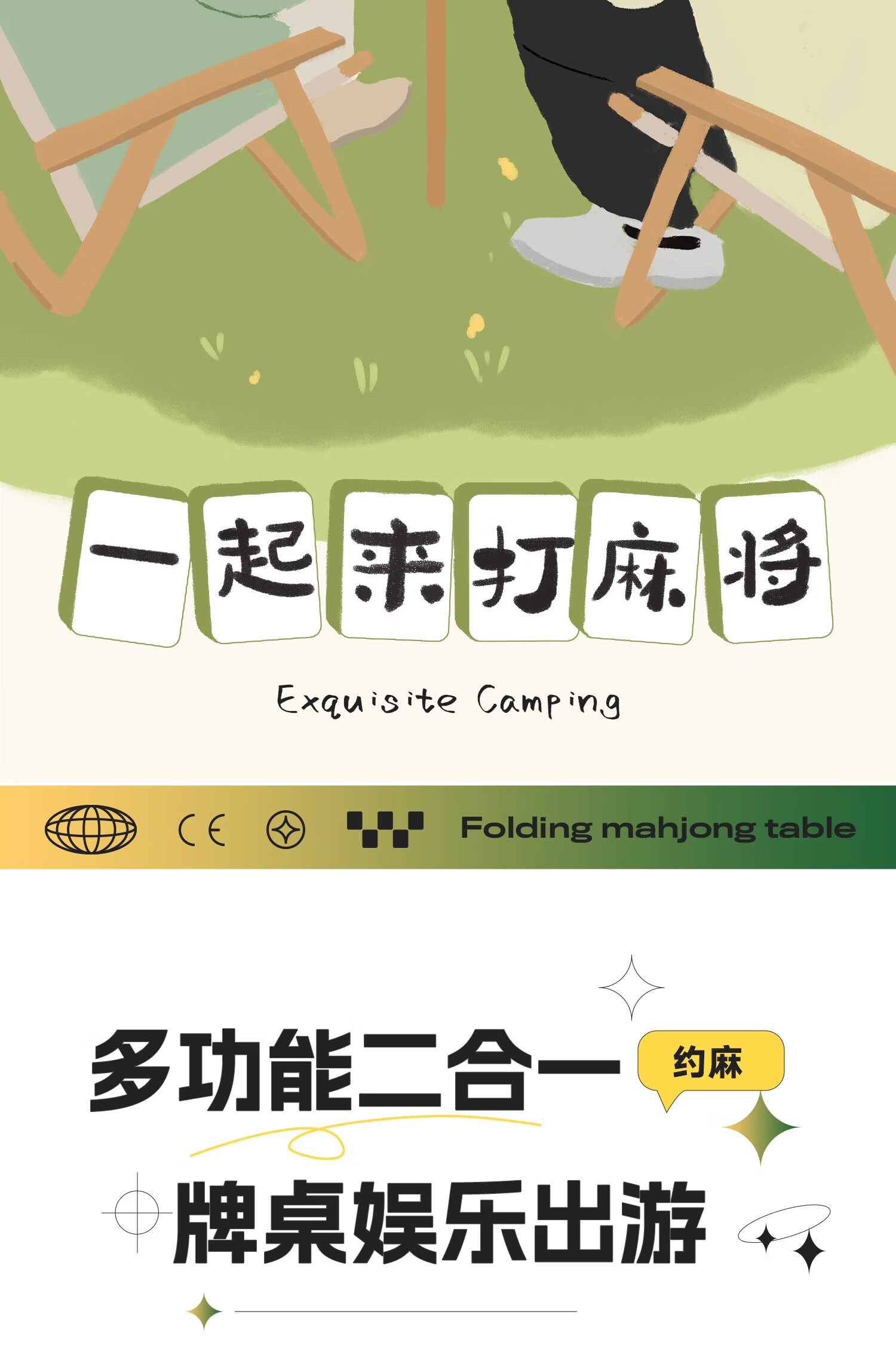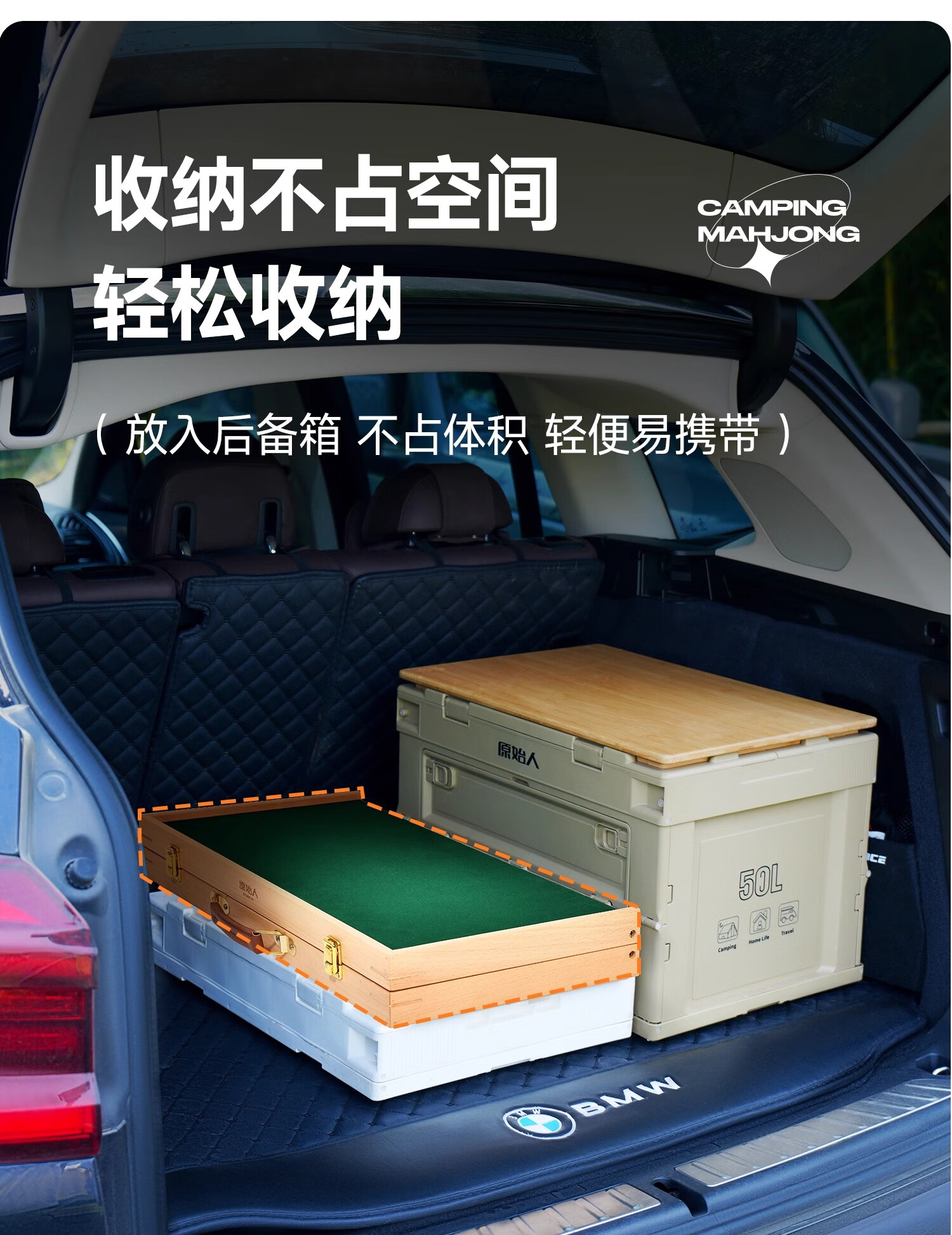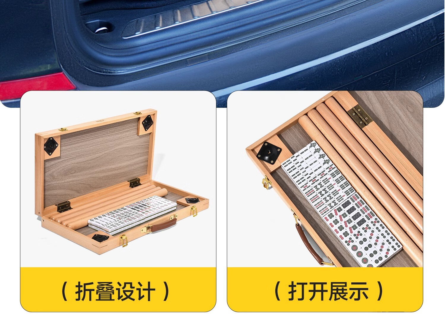 原始人户外折叠麻将桌子旅行便携迷你麻将牌野餐桌椅露营装备用品 麻将桌+144张麻将【送收纳包】