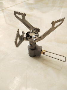 炉头小巧,火力也大,就是三角支架有些设计问题,不平稳,厂家应该给短的支架脚,配个类型于椅脚套或垫之类的。第五张照片应该可以看到支架脚不平。