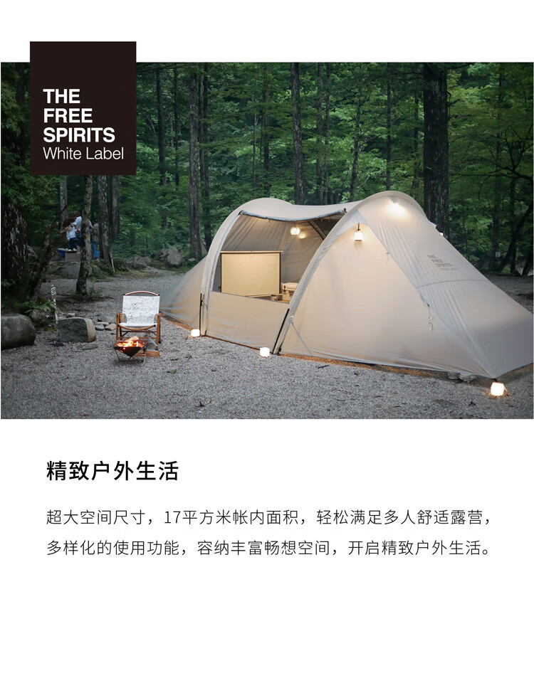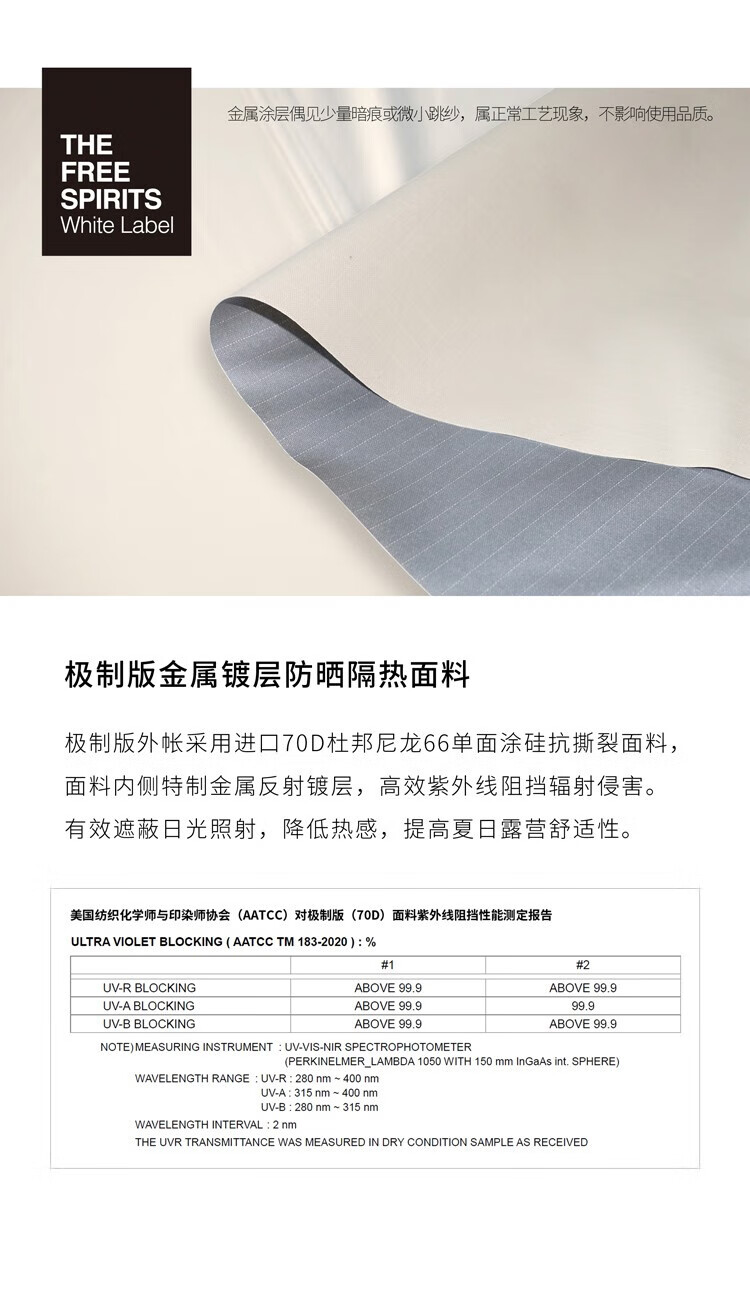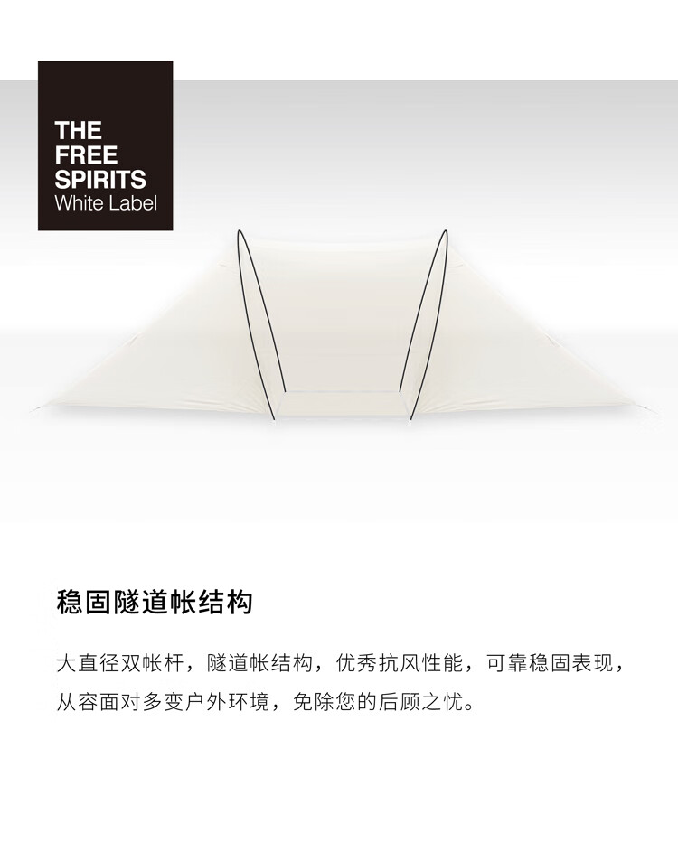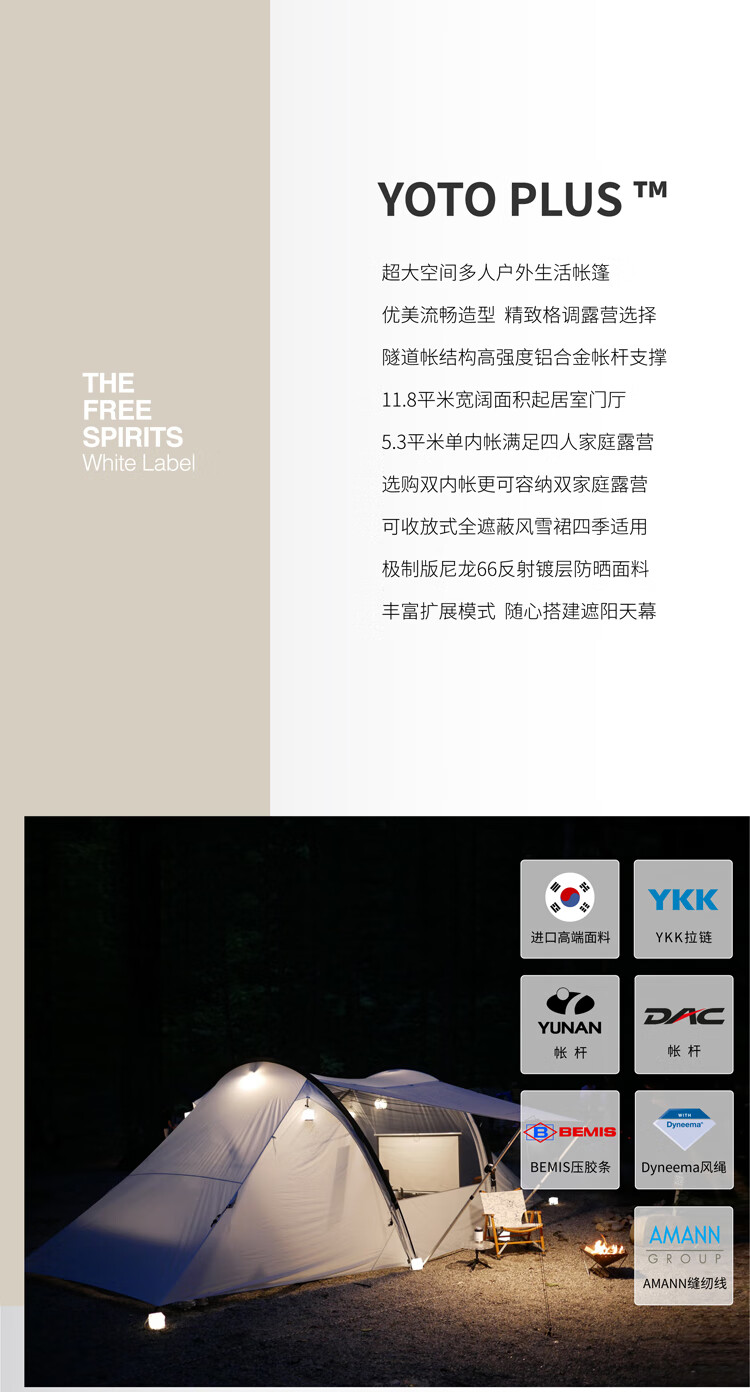 自由之魂(The Free Spirits)/TFS白标70D云途YOTO PLUS精致露营防晒防雨家庭露营帐篷 极制版:象牙白(不含地布) 反面涂银