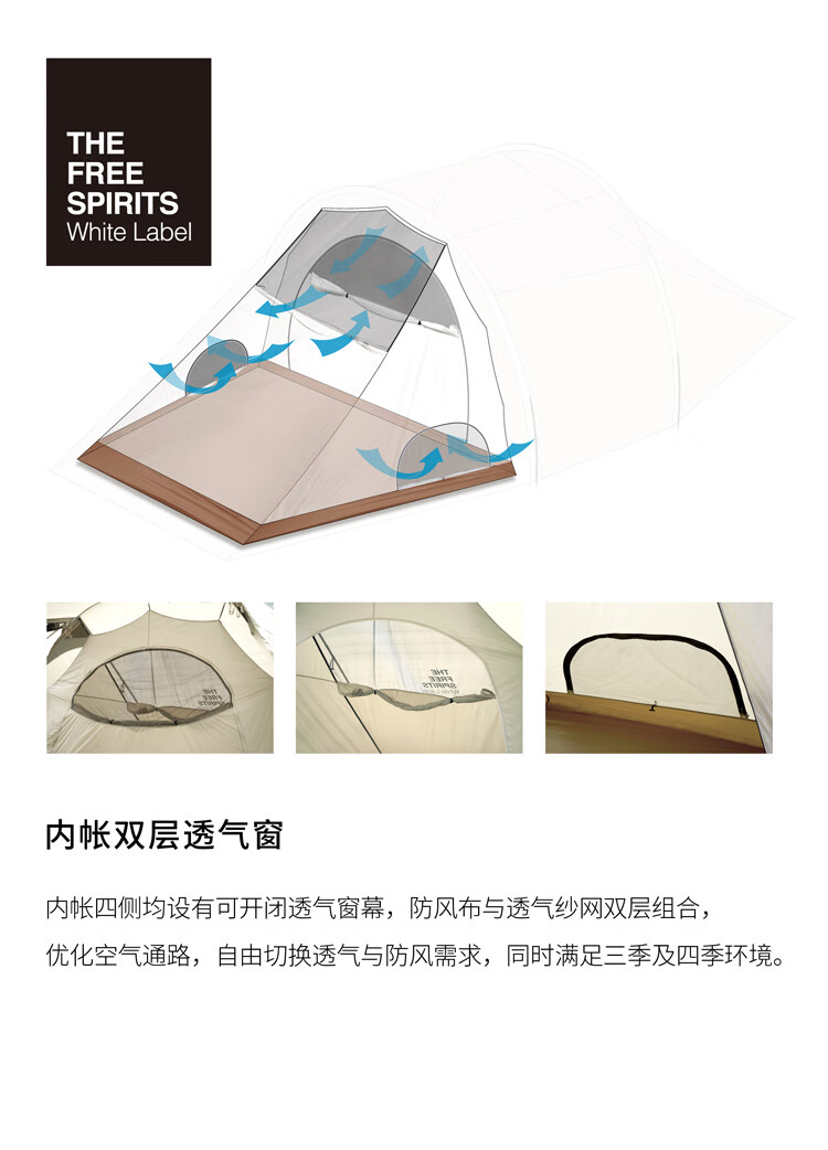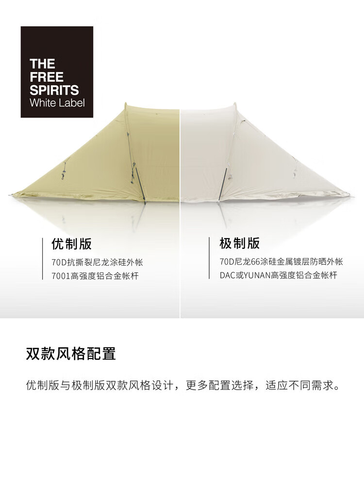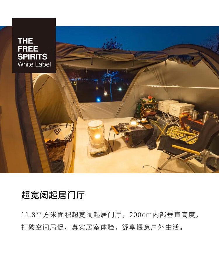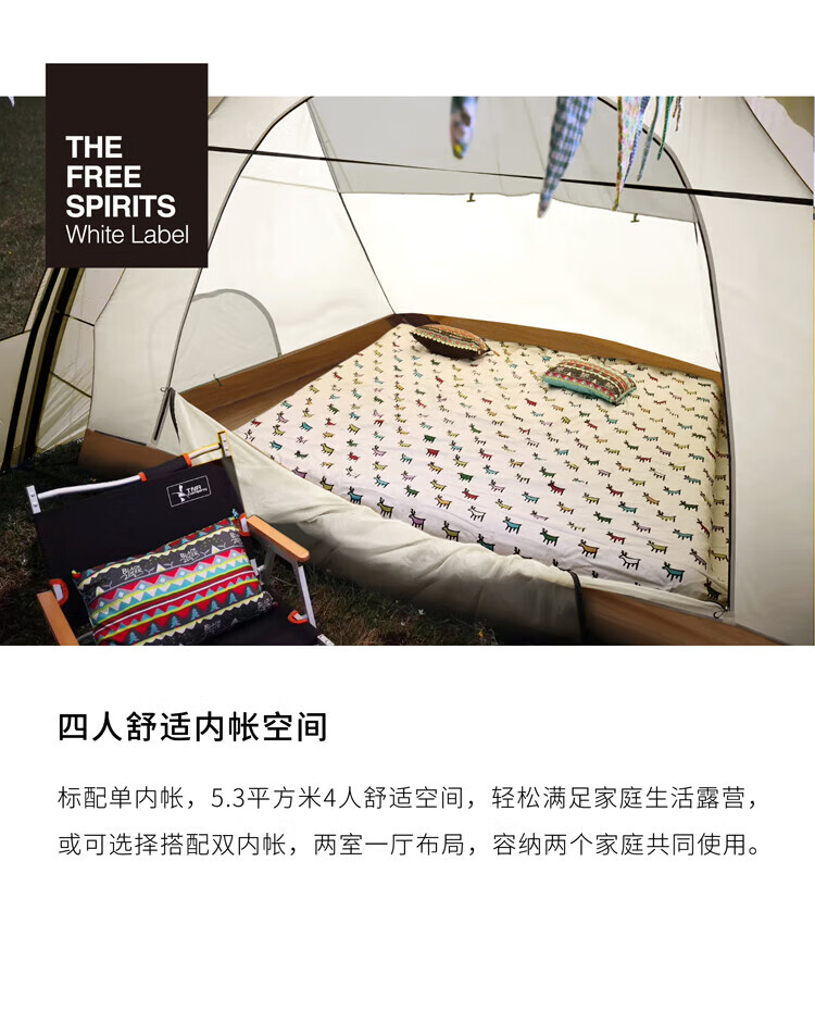 自由之魂(The Free Spirits)/TFS白标70D云途YOTO PLUS精致露营防晒防雨家庭露营帐篷 极制版:象牙白(不含地布) 反面涂银