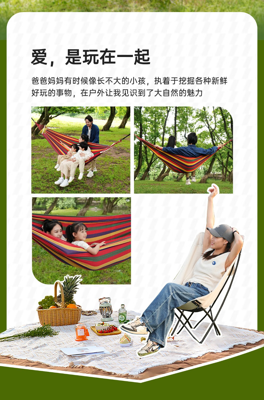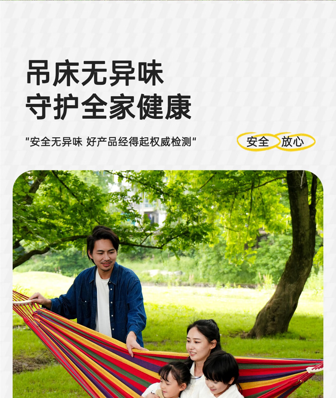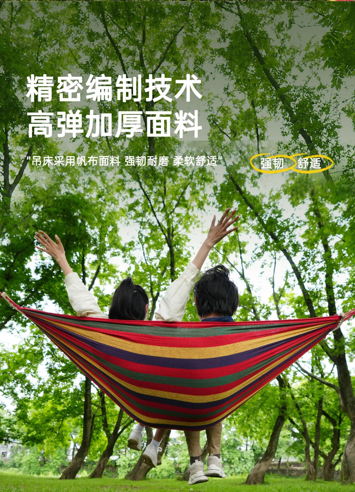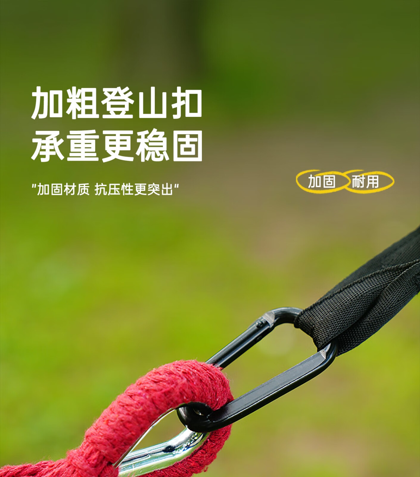 原始人吊床户外荡秋千双人防侧翻摇椅摇床野营掉床神器吊绳网床 木棍绑绳款【适合2~3人】+登山扣