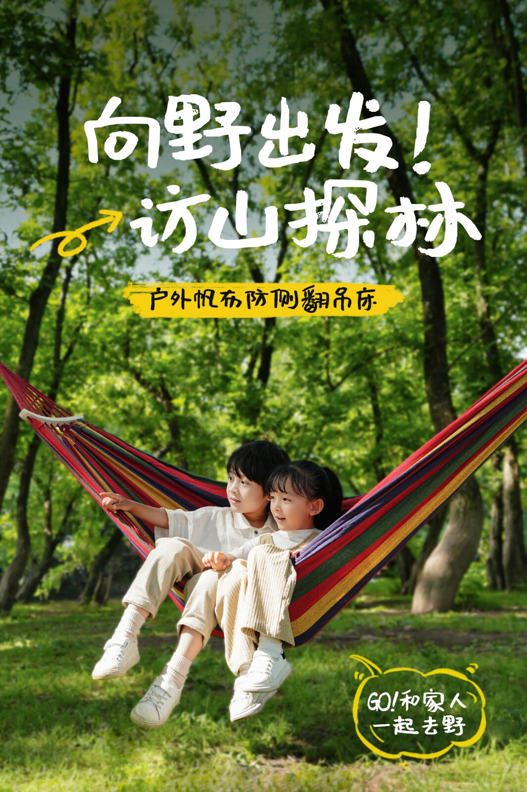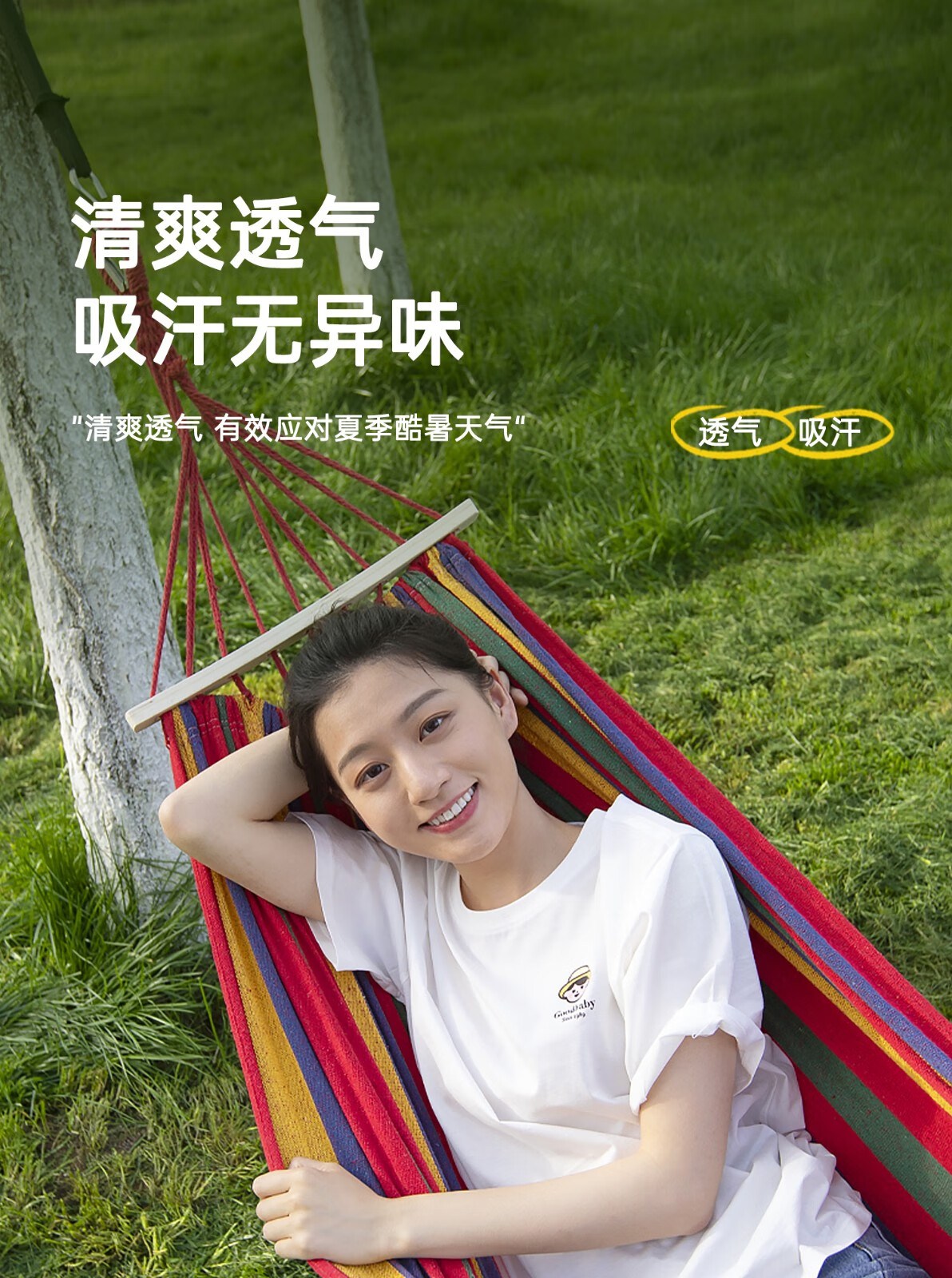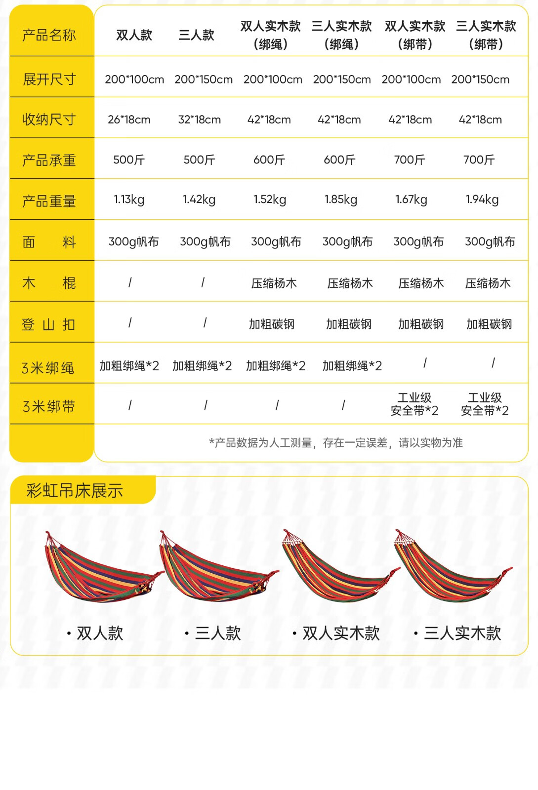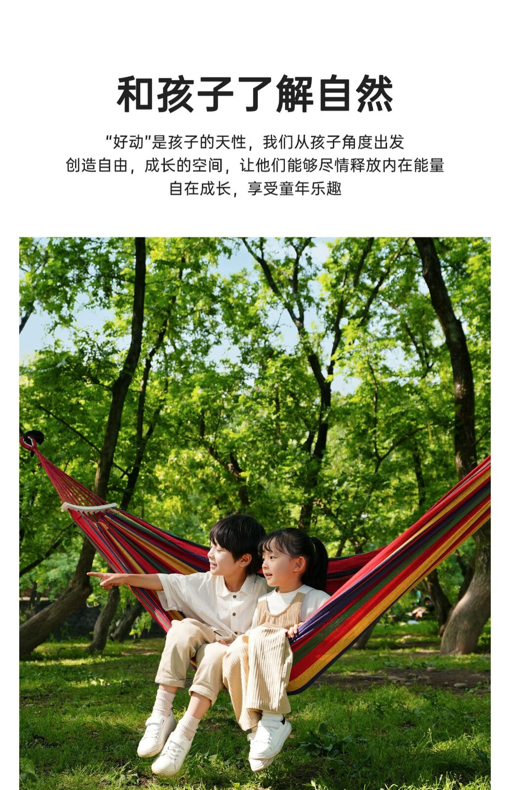 原始人吊床户外荡秋千双人防侧翻摇椅摇床野营掉床神器吊绳网床 木棍绑绳款【适合2~3人】+登山扣