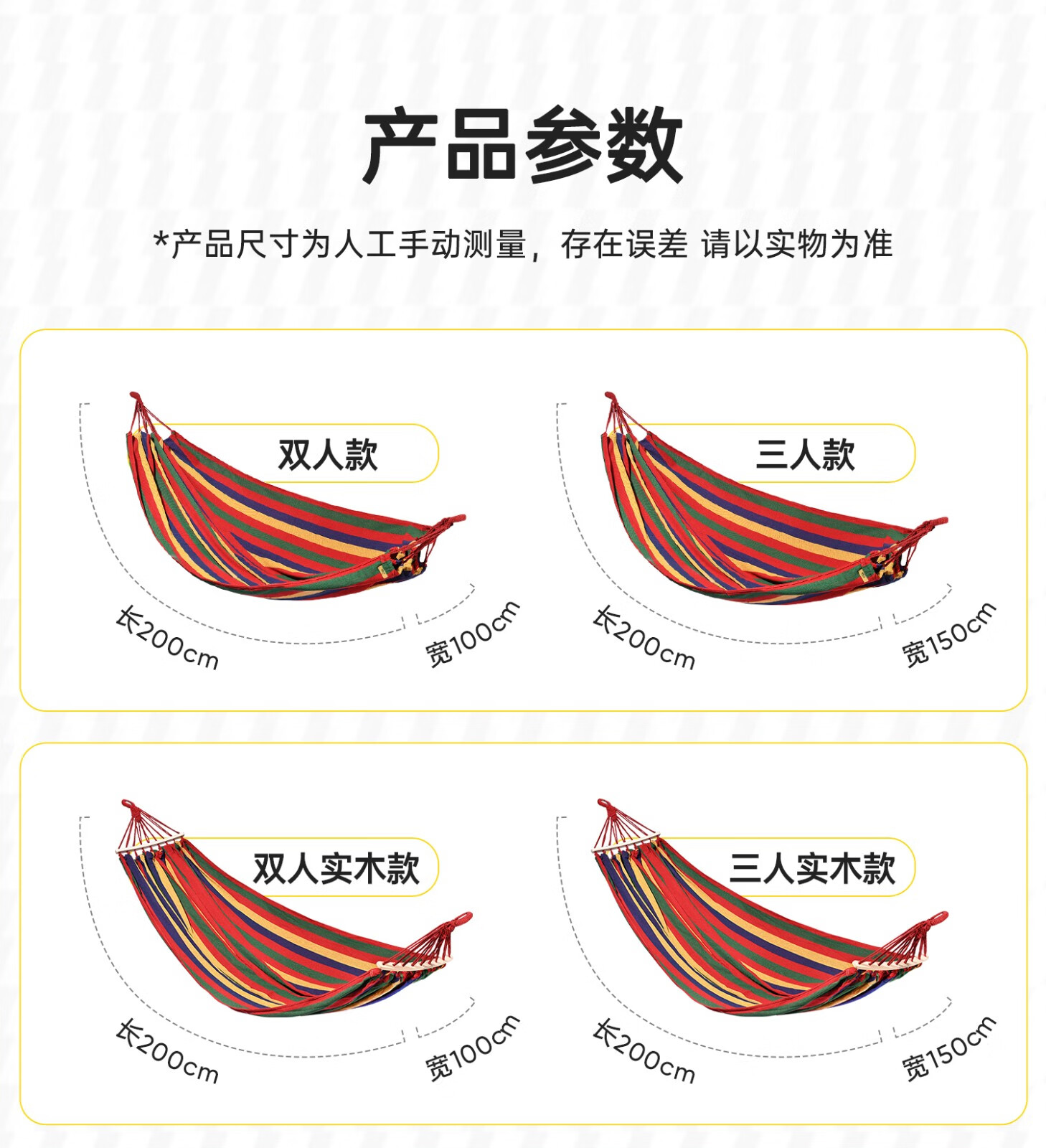 原始人吊床户外成人加厚荡秋千防侧翻摇床庭院掉床宿舍室内儿童网床 三人加厚木棍款+绑带+登山扣