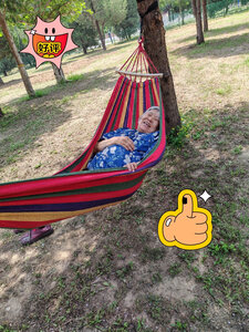 太喜欢这个吊床了,是我小时候一直想要的样子,妈妈说太舒服了,这辈子第一次感觉到这么舒服,我妈一百四十多斤,完全没有问题。特别结实牢固,不会摔跤,