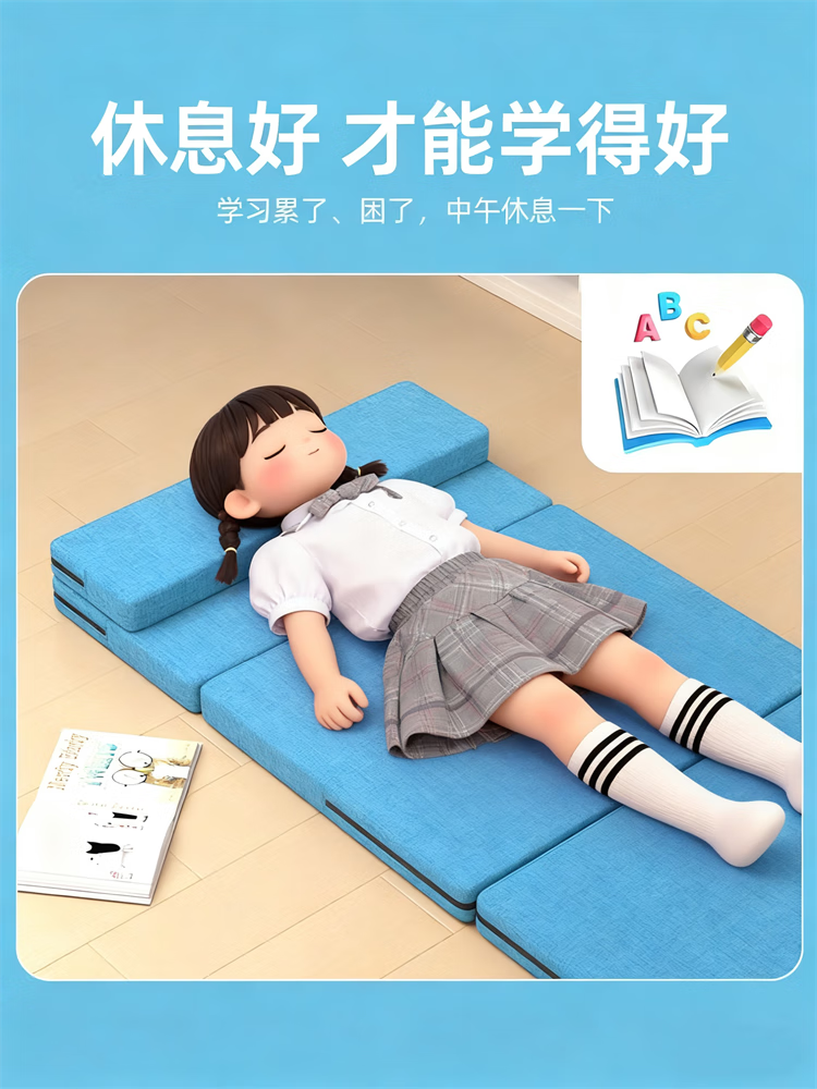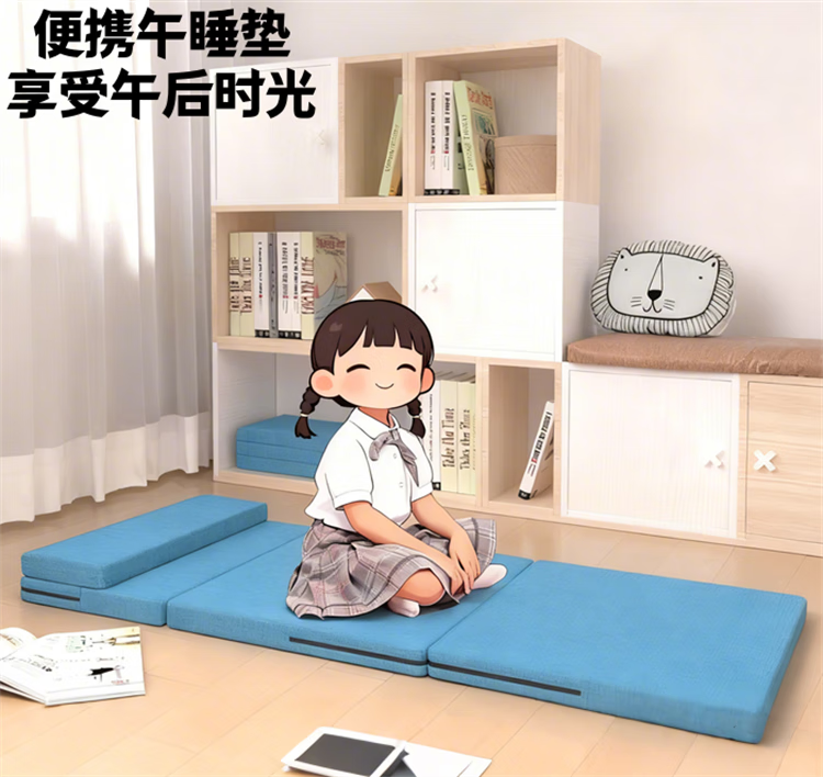 雷博小学生午休垫可睡觉坐加厚折叠教室瑜伽打地铺神器便携防潮湿户外 蓝海豚基础款厚10mm/长178*宽60cm 无规格