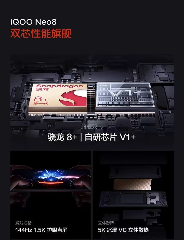 iQOOvivo iQOO Neo8全网通5G骁龙8+处理器智能拍照手机 夜岩 8GB+256GB IQOO Neo8冲浪 12GB+512GB 赛点 12GB+256GB