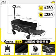 爱山客露营车折叠推车户外装备小推车营地手拉车旅行拖车买菜车拉快递车 250L 暗夜黑-静音实心轮+后开模式
