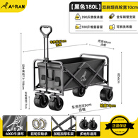 Aoran户外露营推车户外超大营地车野营可折叠小拖车野餐车露营车桌板 180L 黑色-双刹坦克轮宽10cm