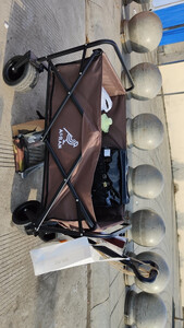 非常好用的车子,出去露营拉东西非常方便,加宽的轮子在草地上上也如履平地,拉起来一点不费力,方向感非常好把握。容量也大,沉重佳。